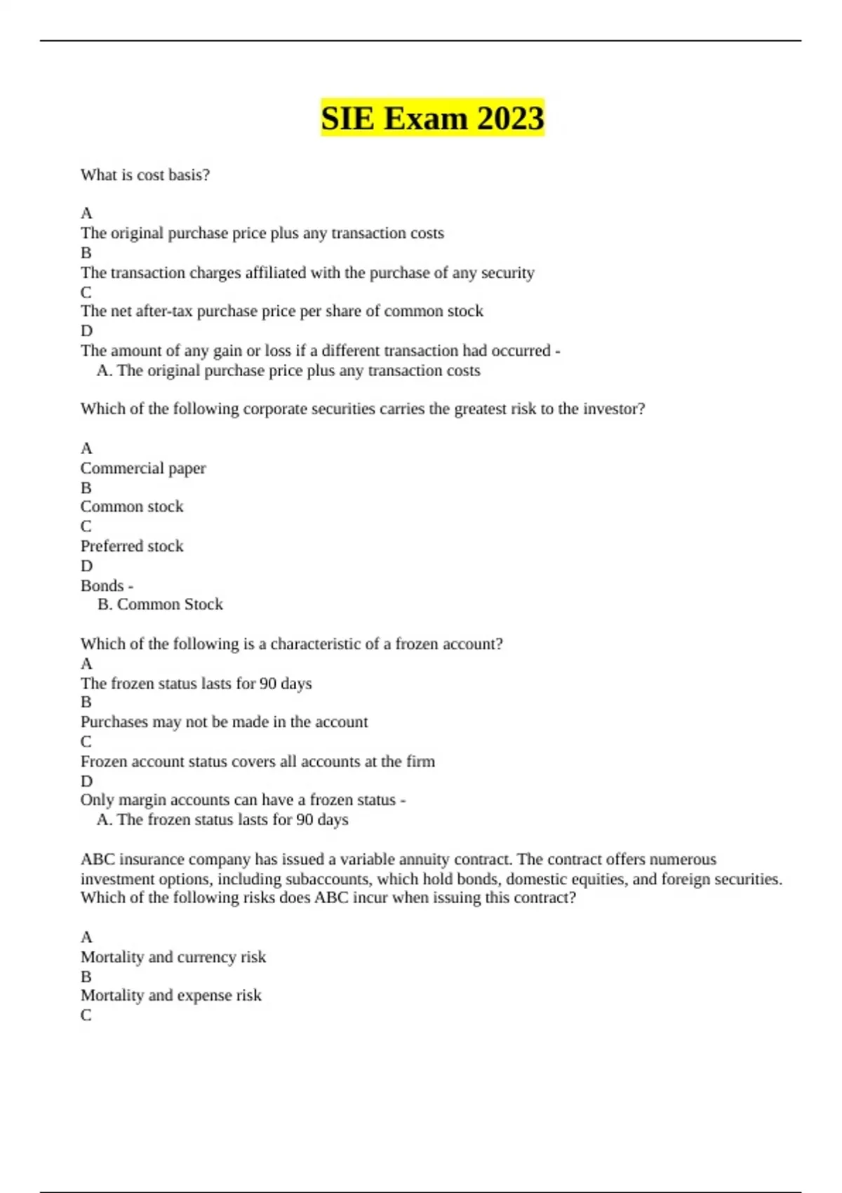 Exam of 63 pages for the course FINRA at FINRA (SIE Exam 2023.)