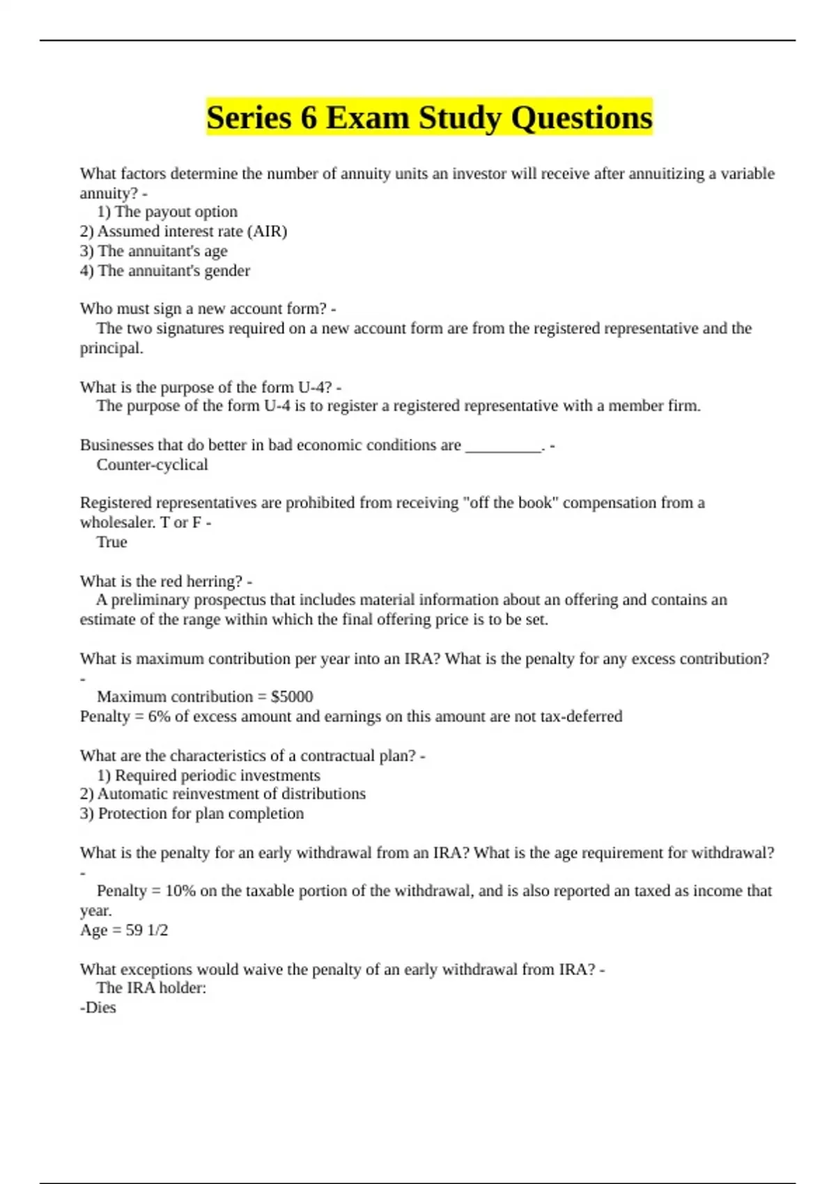 Series 6 Exam Study Questions.