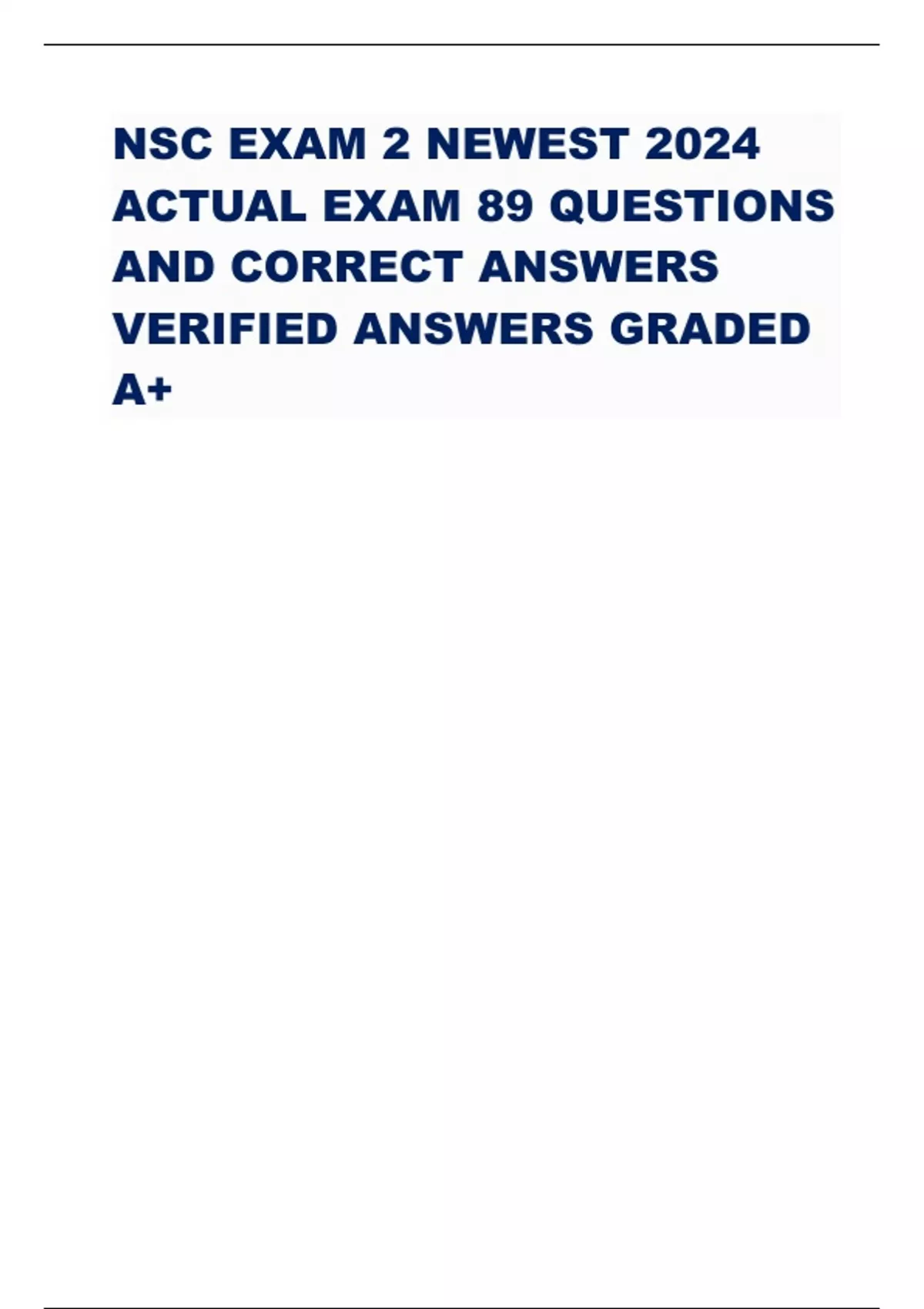 NSC EXAM 2 NEWEST 2024 ACTUAL EXAM 89 QUESTIONS AND CORRECT ANSWERS VERIFIED ANSWERS GRADED A+