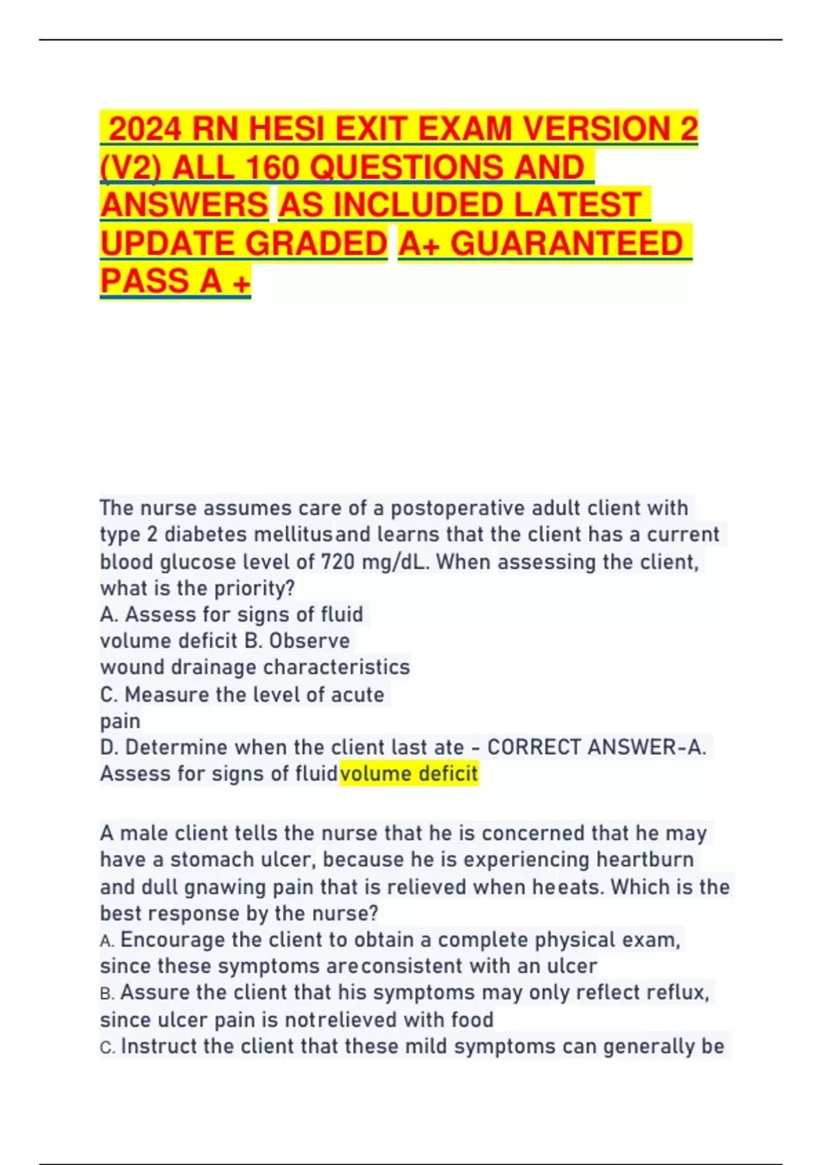 HESI RN EXIT EXAM V2 QUESTIONS & ANSWERS 2022/2023 UPDATE ( SCREENSHOT FROM ACTUAL EXAM )
