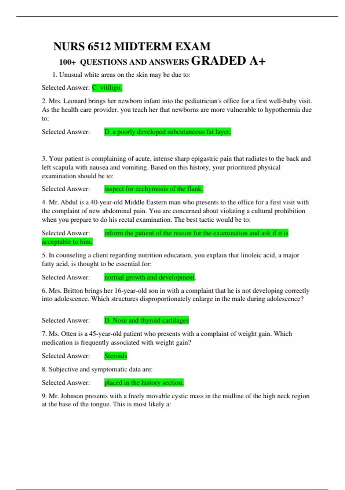 NURS 6512 Midterm Exam Questions and Answers. NURS 6512 Midterm Exam Questions and Answers. NURS 6512 Midterm Exam Questions and Answers.