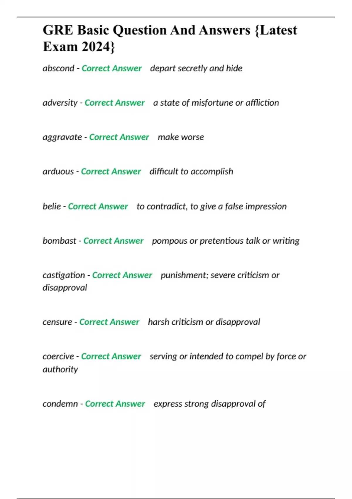 gre basic question and answers latest exam 2024