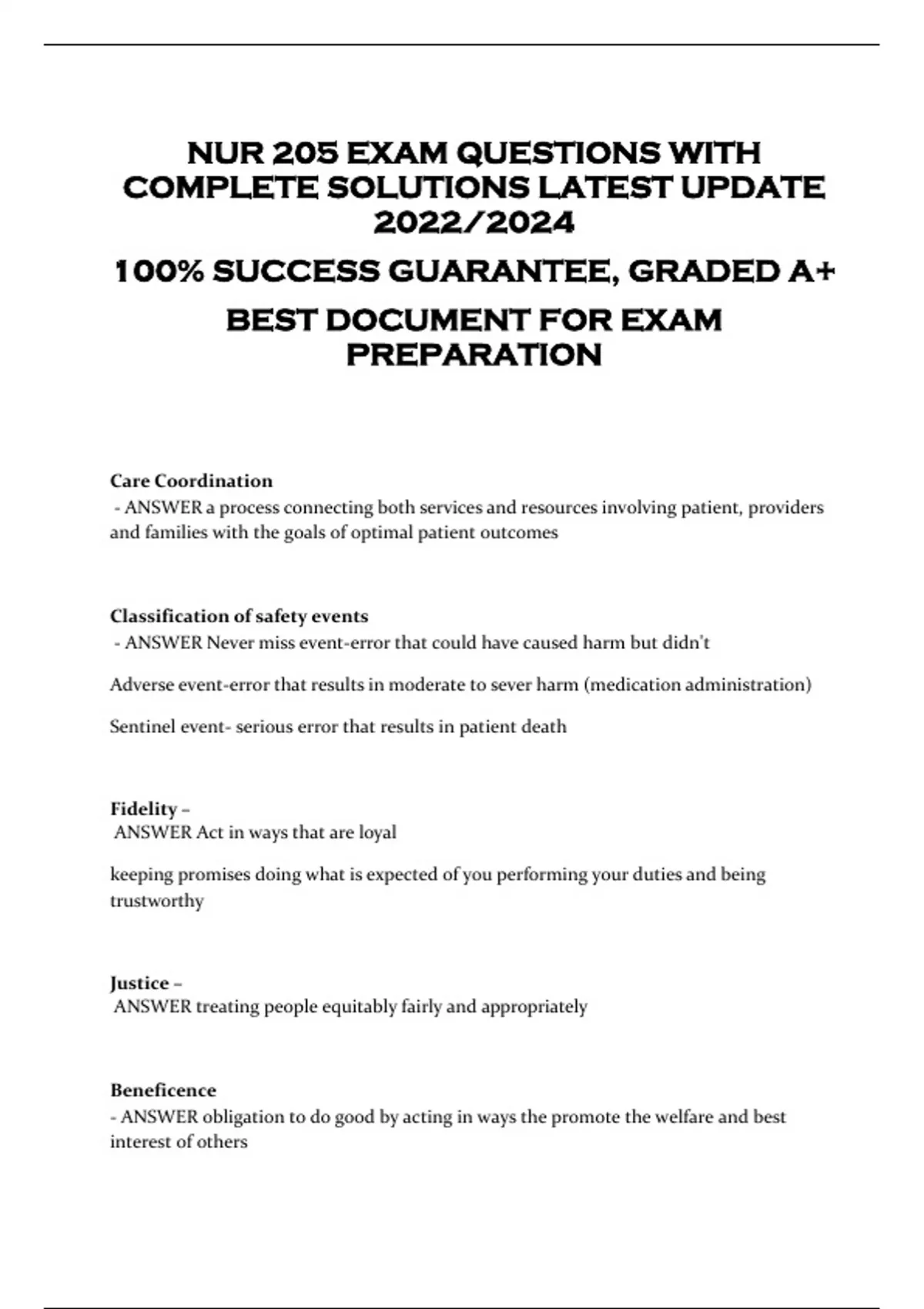 NUR 205 EXAM QUESTIONS WITH COMPLETE SOLUTIONS LATEST UPDATE 2022/2024 100% SUCCESS GUARANTEE, GRADED A+ BEST DOCUMENT FOR EXAM PREPARATION