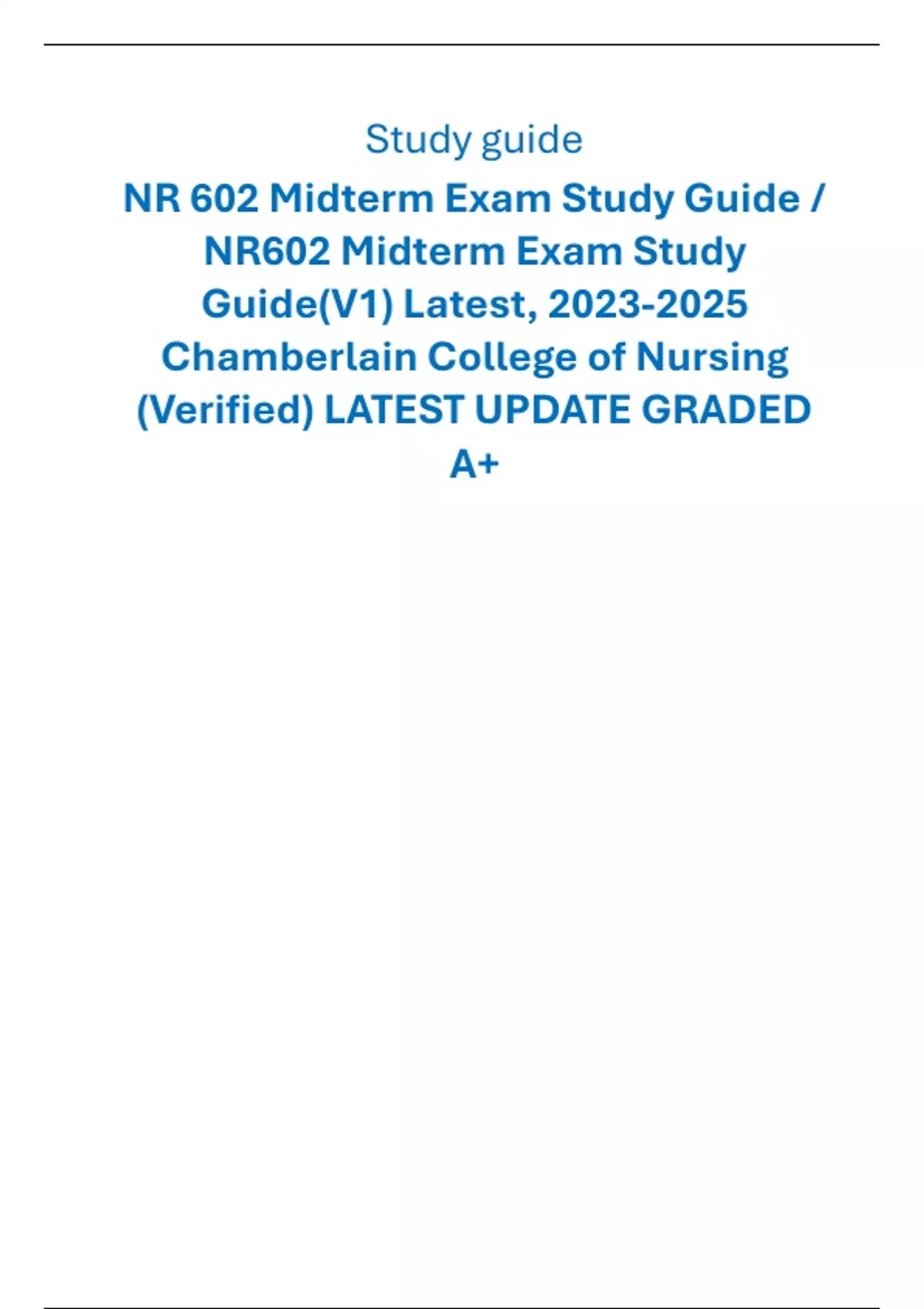 NR 602 Midterm Exam Study Guide / NR602 Midterm Exam Study Guide(V1) Latest, Chamberlain College of Nursing (Verified) LATEST UPDATE GRADED A+