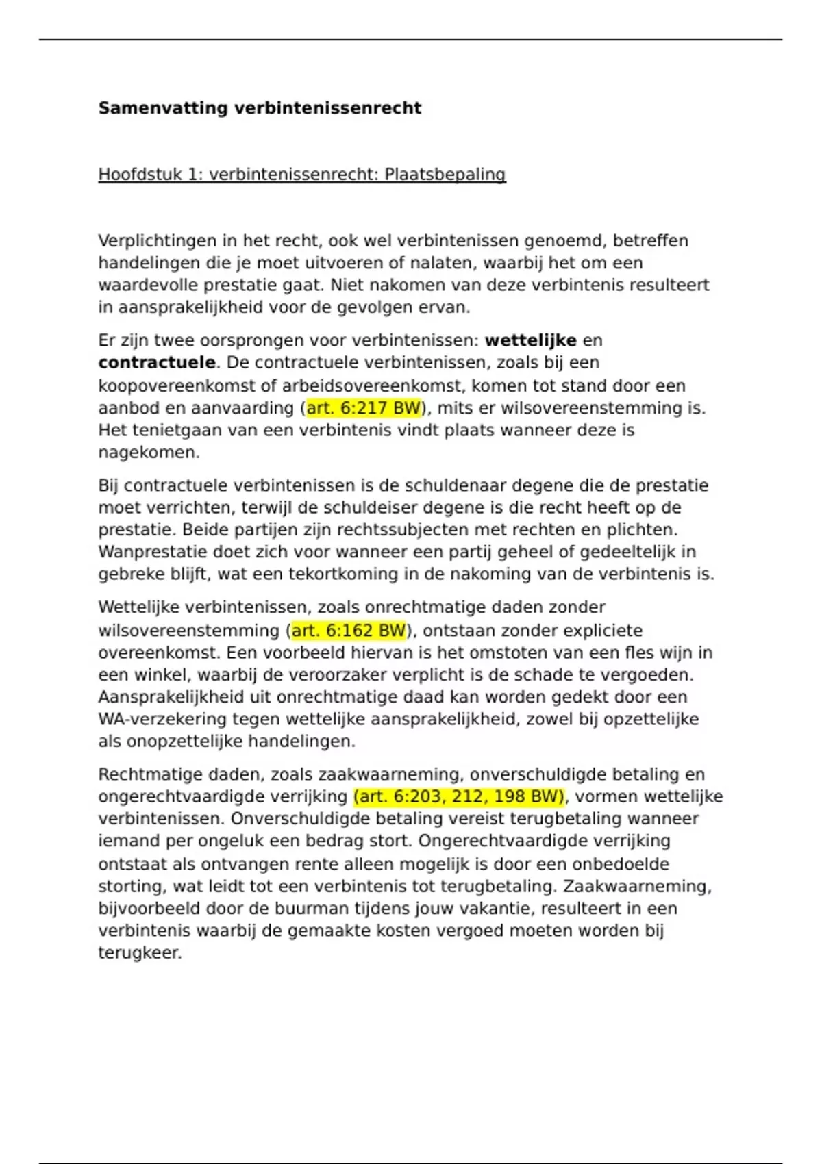 Hoofdstuk 1: verbintenissenrecht: Plaatsbepaling