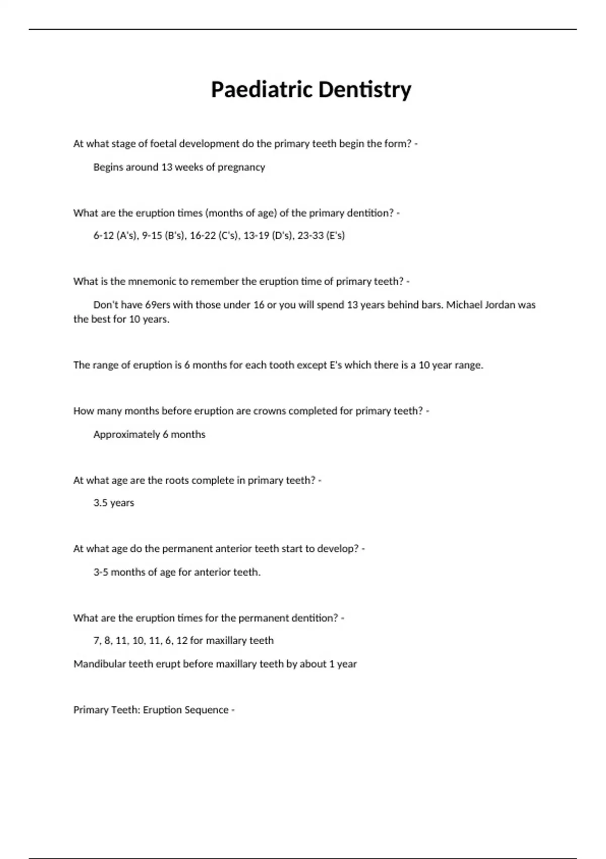 Paediatric Dentistry.LATEST 2024 GRADED A PLUS