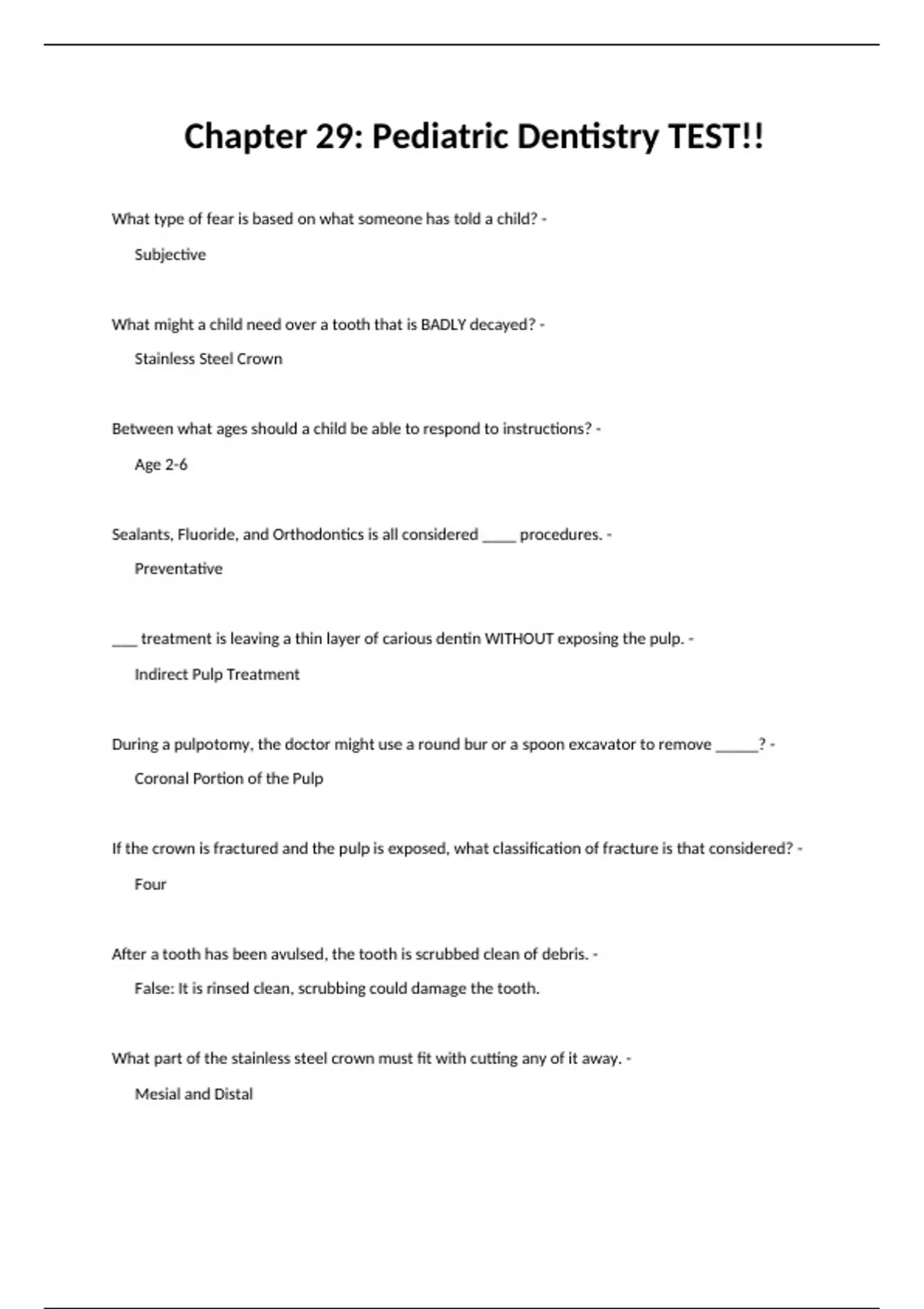 Exam of 7 pages for the course PEDIATRIC DENTISTRY at PEDIATRIC DENTISTRY (Chapter 29.)