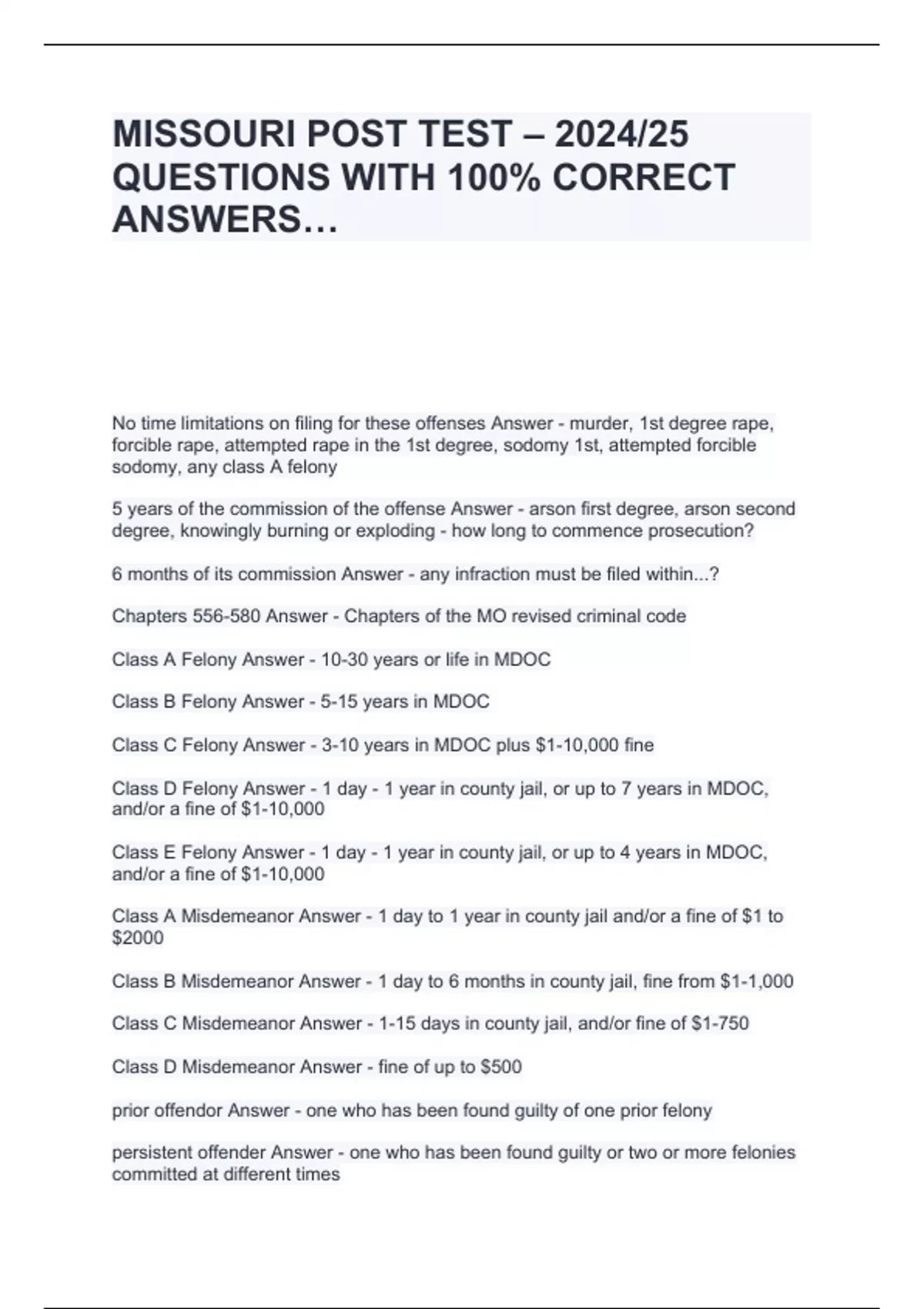 MISSOURI POST TEST – 2024/25 QUESTIONS WITH 100% CORRECT ANSWERS…
