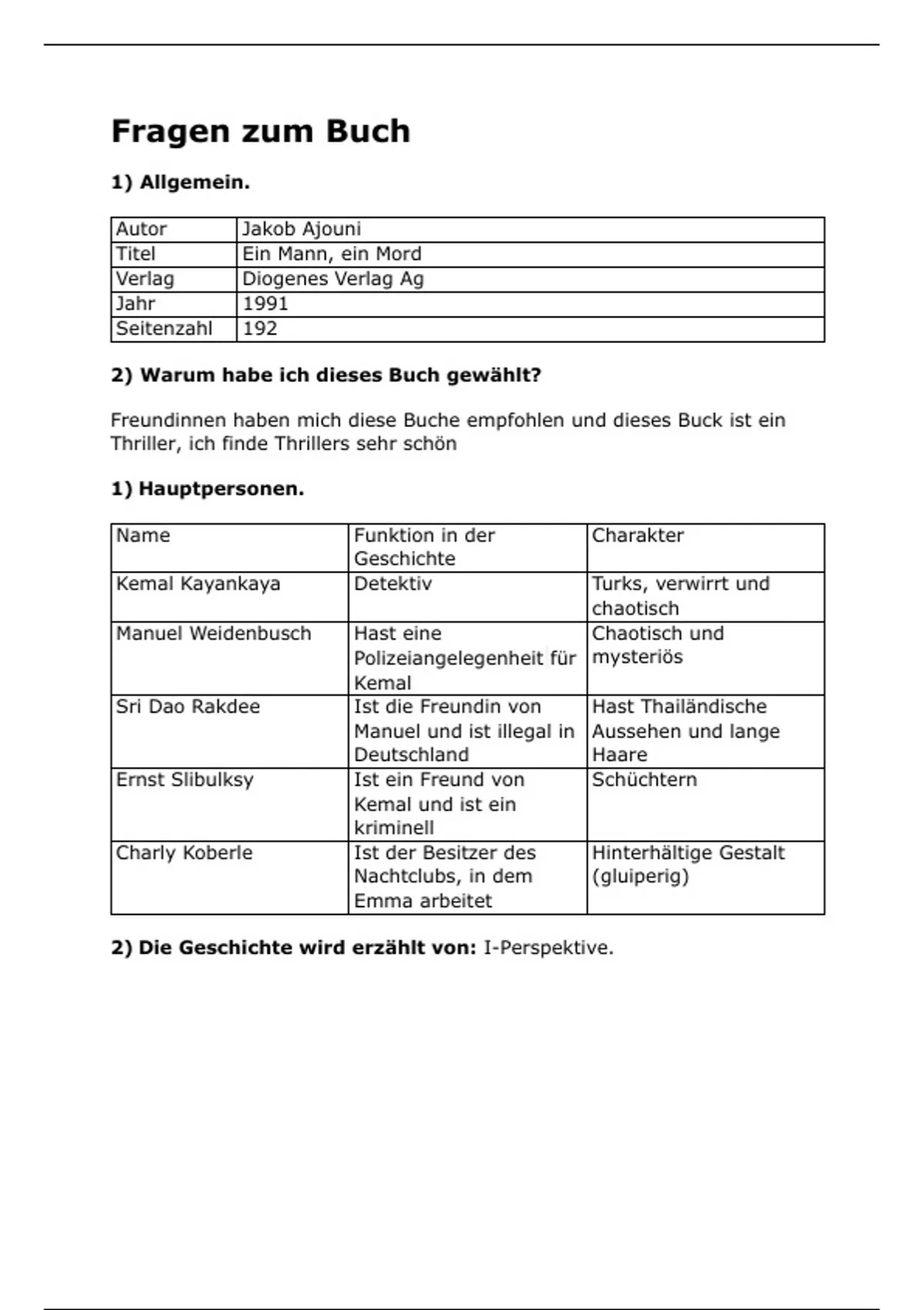 Leesdossier voor duits over het boek "Ein mann, ein mord" van Jakob Arjouni. Ik had een 7,0 voor dit mondeling