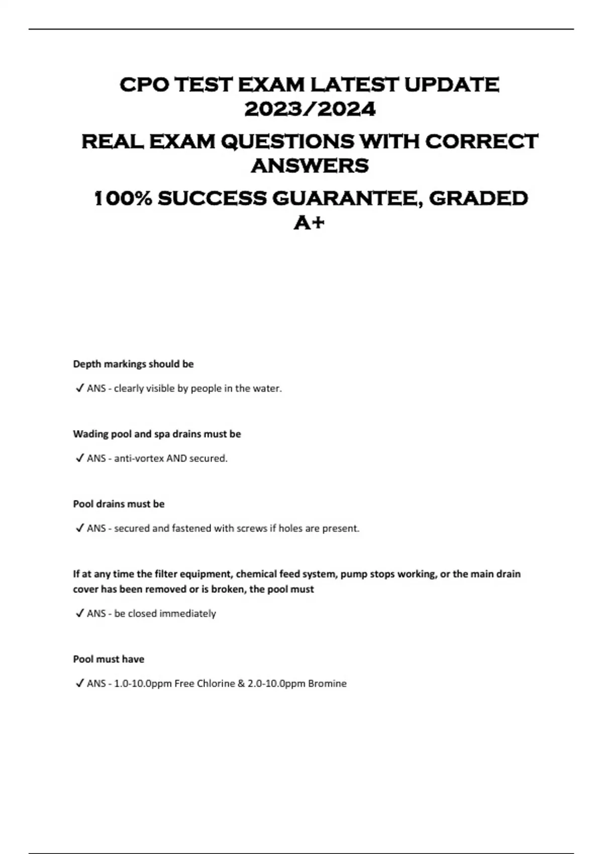 CPO TEST EXAM LATEST UPDATE 2023/2024 REAL EXAM QUESTIONS WITH CORRECT ANSWERS 100% SUCCESS GUARANTEE, GRADED A+