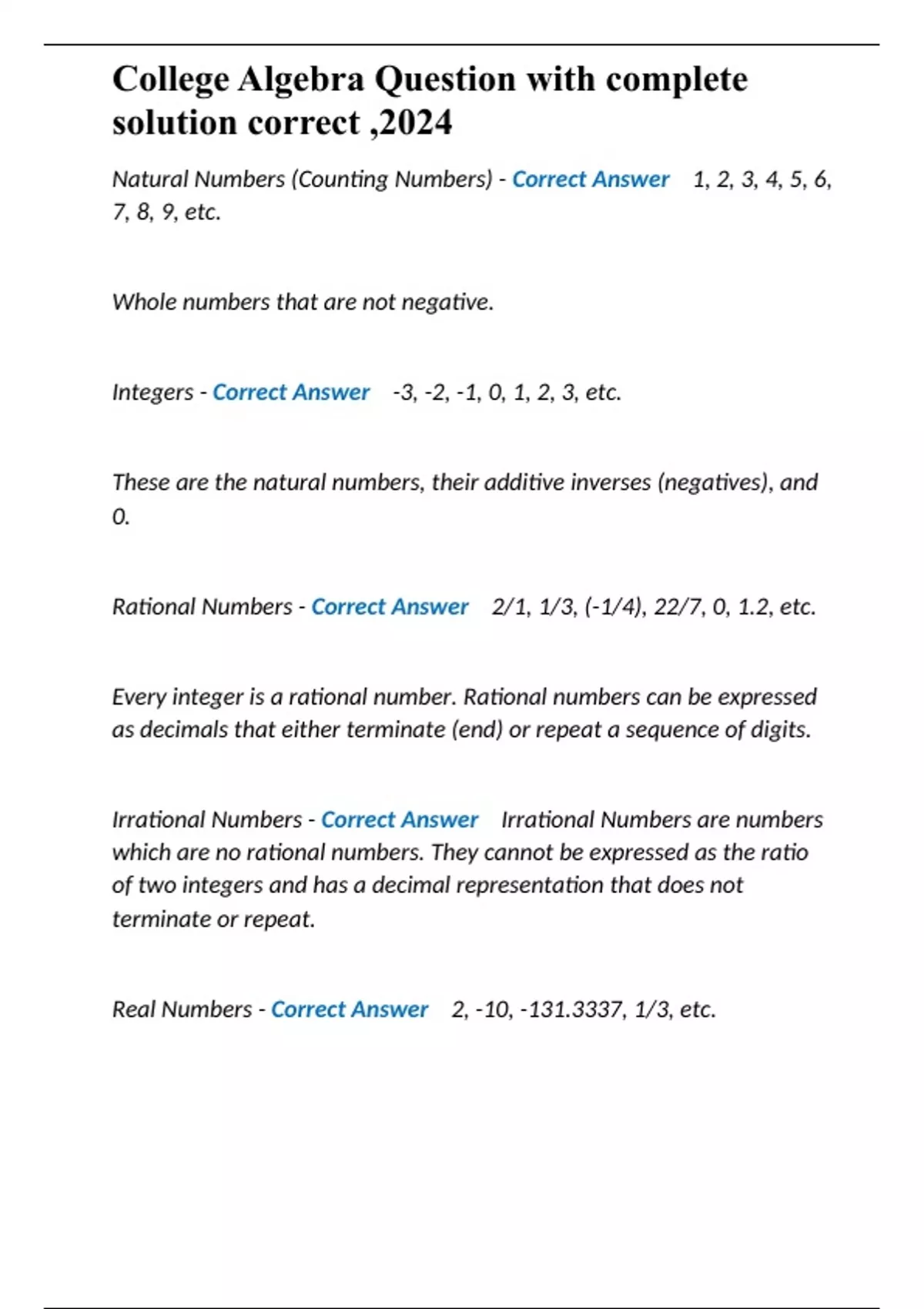College Algebra Question with complete solution correct ,2024
