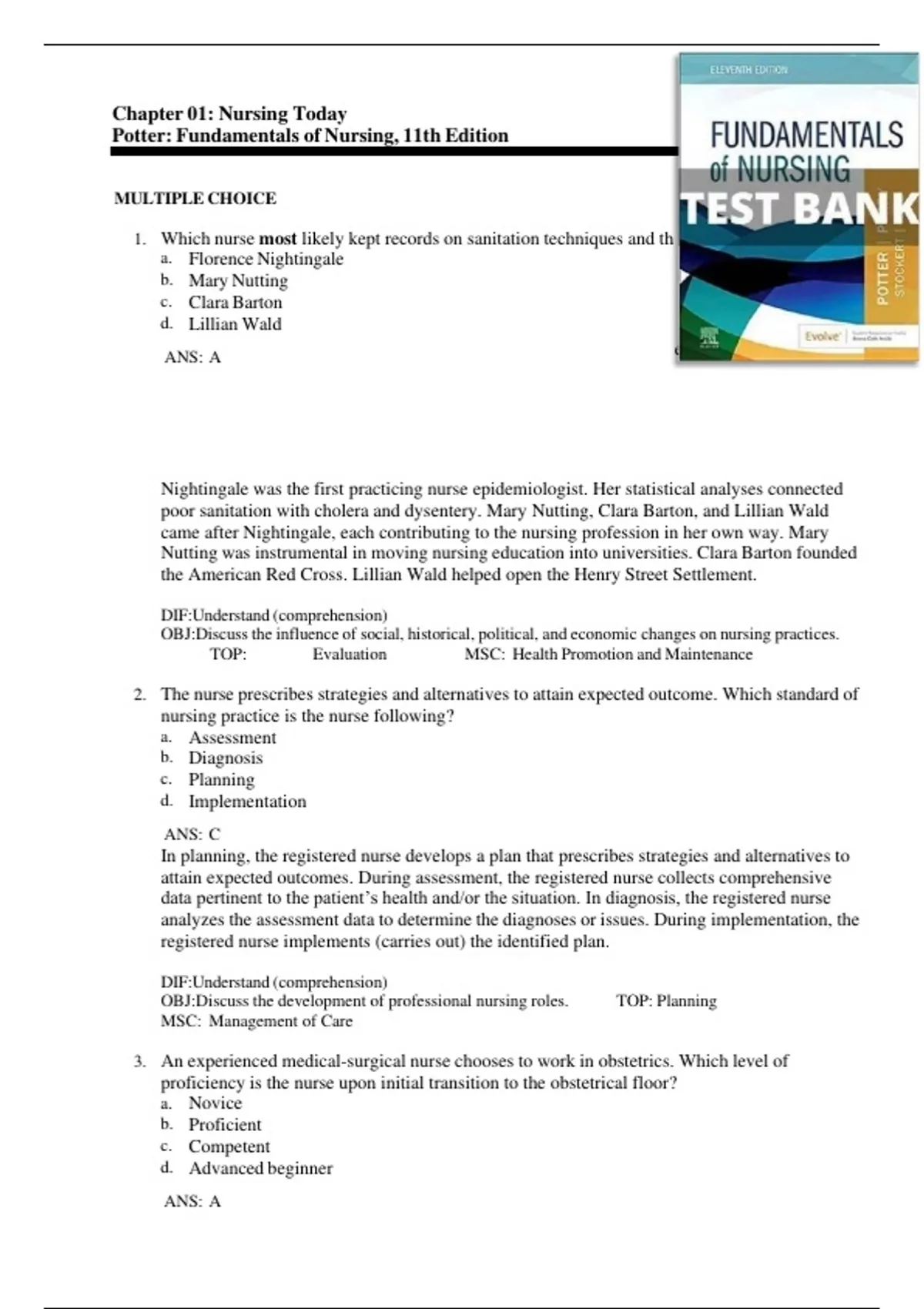 This Fundamentals of Nursing, 11th Edition by Patricia Potter and Anne Perry resource provides the complete solutions manual and accredited test bank for all 50 chapters, fully updated to the 2025/2026 newest version. With detailed answers, step-by-step rationales, and verified exam solutions, this pack is perfect for nursing students, instructors, and professionals preparing for NCLEX exams, classroom tests, or clinical applications. What’s Included: Solutions Manual with complete chapter-by-chapter explanations Test Bank with 100% verified answers (MCQs, case studies, true/false, matching, and scenario-based questions) Coverage of all 50 chapters from basic nursing foundations to advanced care concepts Newest 2025/2026 update with accurate answers and rationales Instant PDF digital download for immediate access Why This Pack? Assured A+ grade support for nursing assignments, tests, and clinical practice Developed for students preparing for NCLEX, HESI, ATI, and final exams Instructors benefit from a ready-to-use test bank for exams & quizzes Saves study time with direct, clear, and reliable answers Major Chapters & Topics (Ch. 1–50): Nursing Foundations and Theory Health Assessment and Physical Examination Patient Safety, Infection Control, and Hygiene Medication Administration & Dosage Calculations Fluid, Electrolyte, and Acid-Base Balance Pain Management and Comfort Patient Education and Evidence-Based Practice Adult, Pediatric, Maternal, and Geriatric Nursing Critical Care, Emergency, and Palliative Care Leadership, Ethics, and Professional Practice