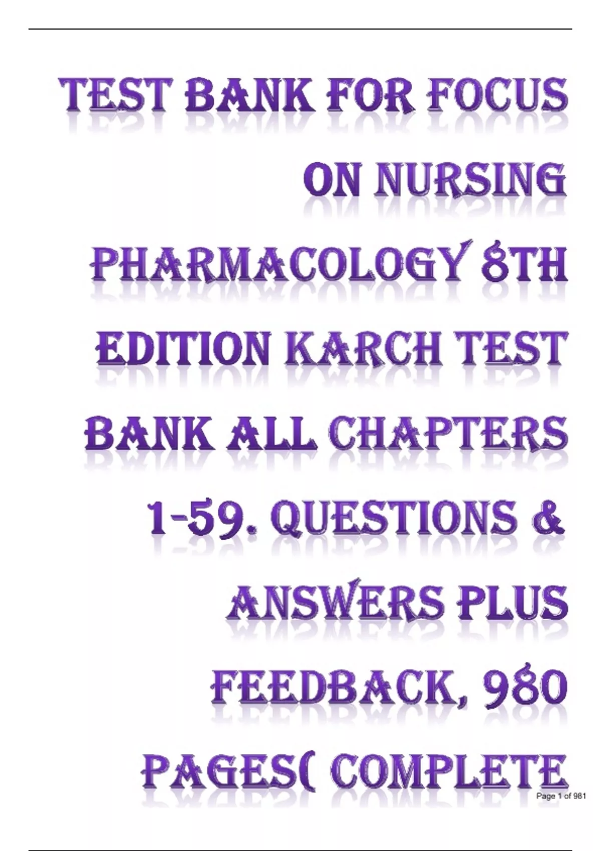 focus-on-nursing-pharmacology-8th-edition-karch-test-bank-all-chapters-covered