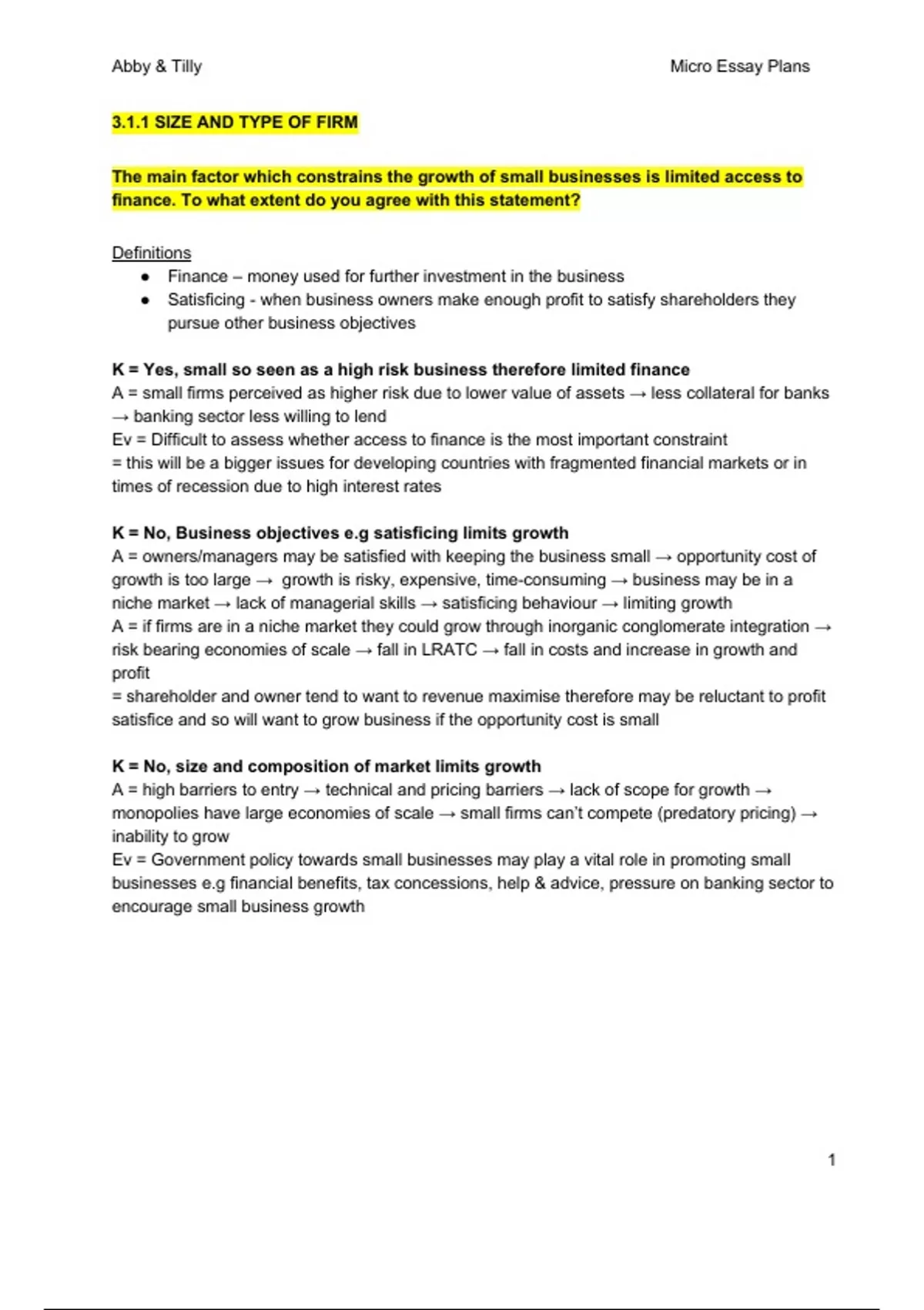 K = Yes, small so seen as a high risk business therefore limited finance