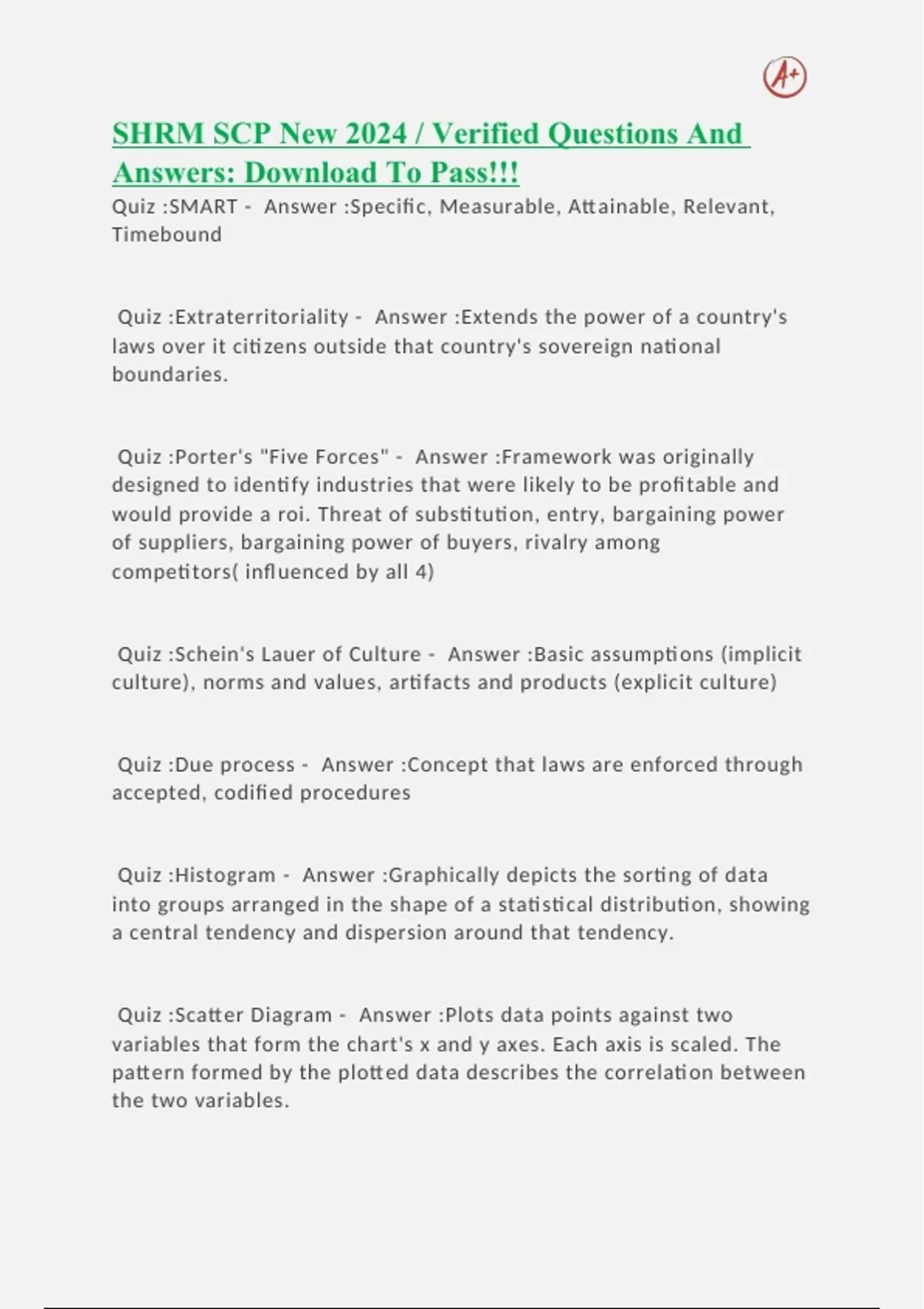 SHRM SCP New 2024 / Verified Questions And Answers: Download To Pass!!!
