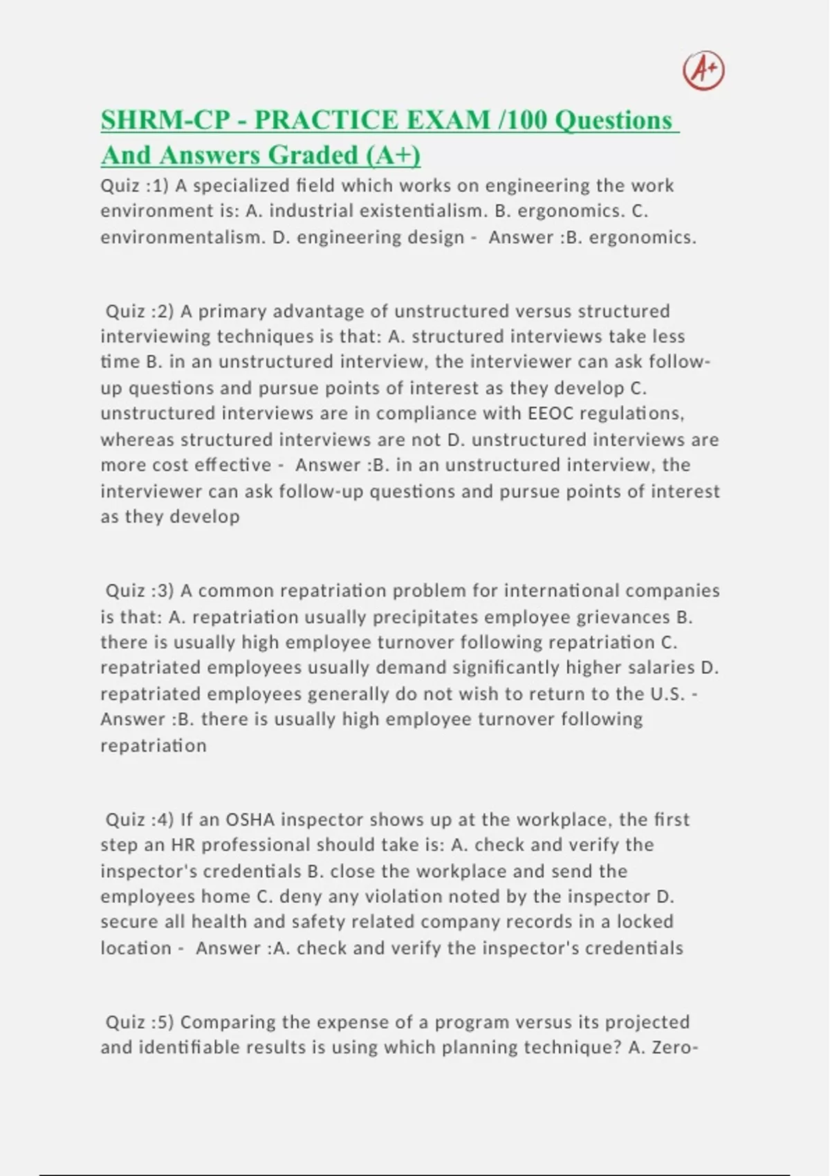 Quiz :4) If an OSHA inspector shows up at the workplace, the fi rst