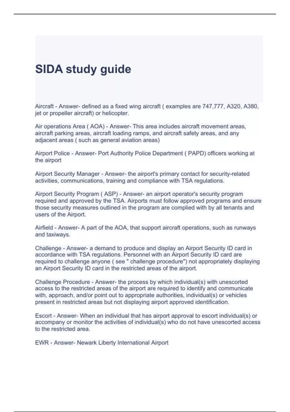 SIDA study guide with complete solutions