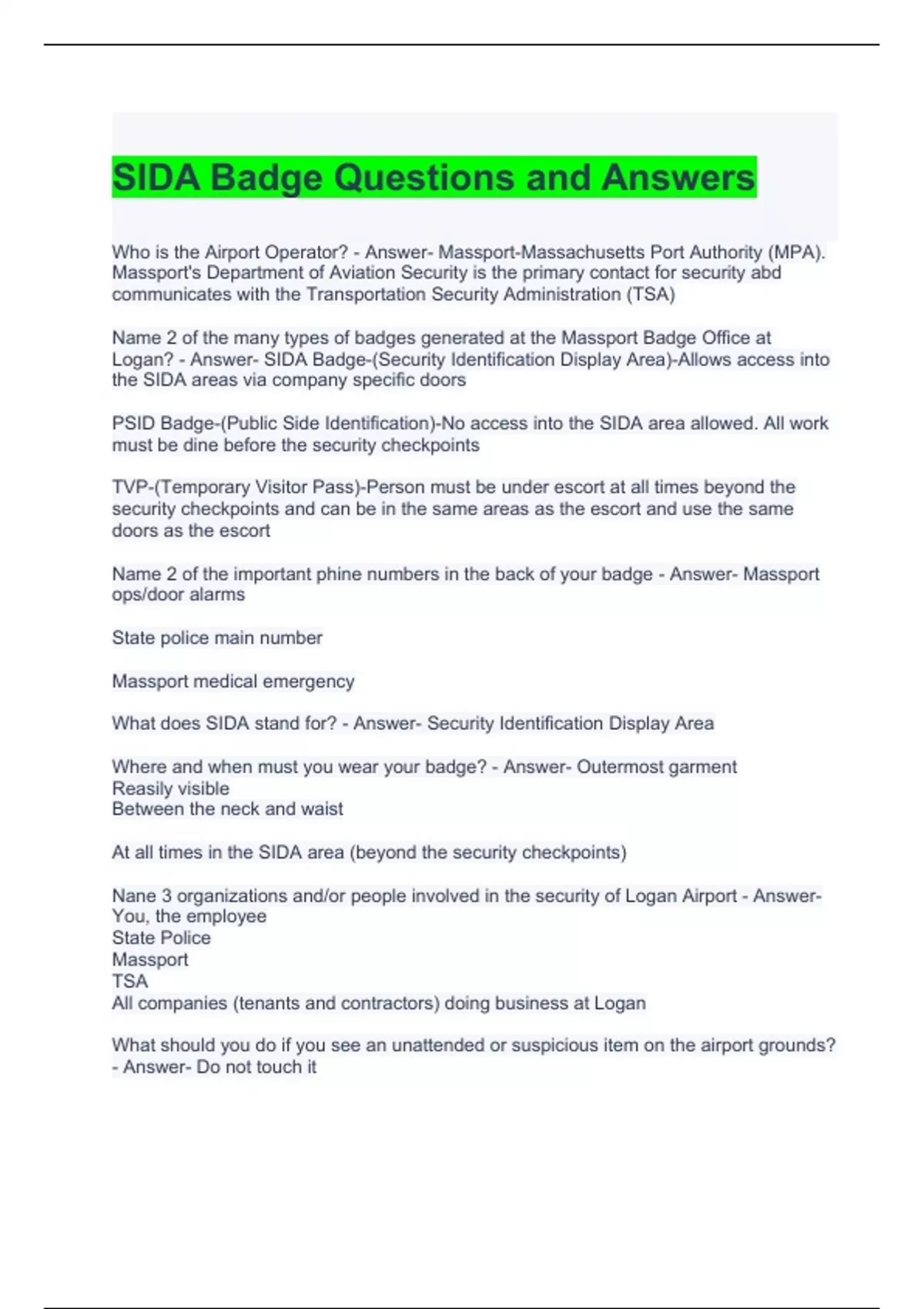 SIDA Badge Questions and Answers