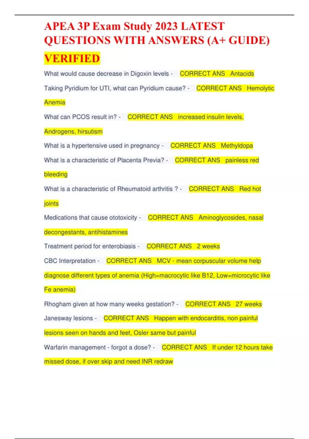 APEA 3P Exam Study 2023 LATEST QUESTIONS WITH ANSWERS (A+ GUIDE) VERIFIED