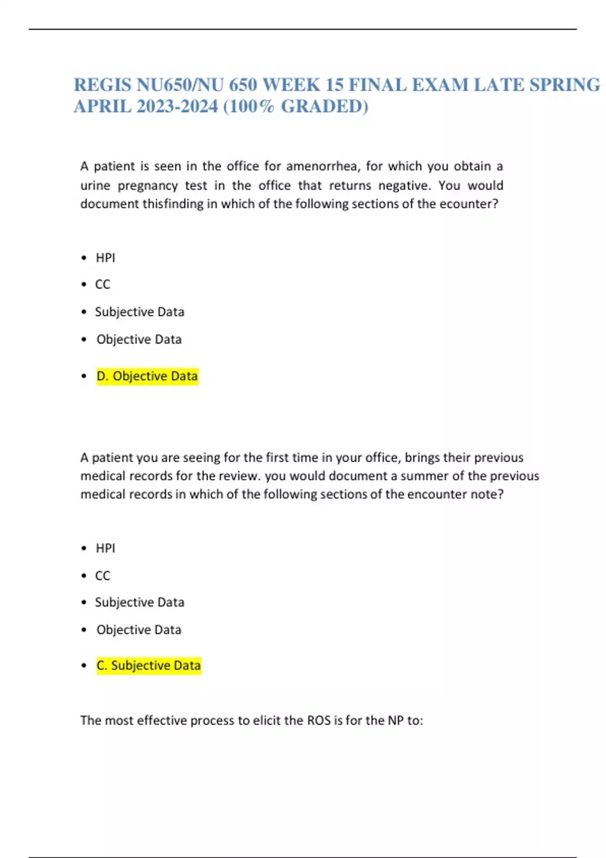 RN 650/RN 650 WEEK 15 FINAL EXAM LATE SPRING APRIL (100% GRADED)