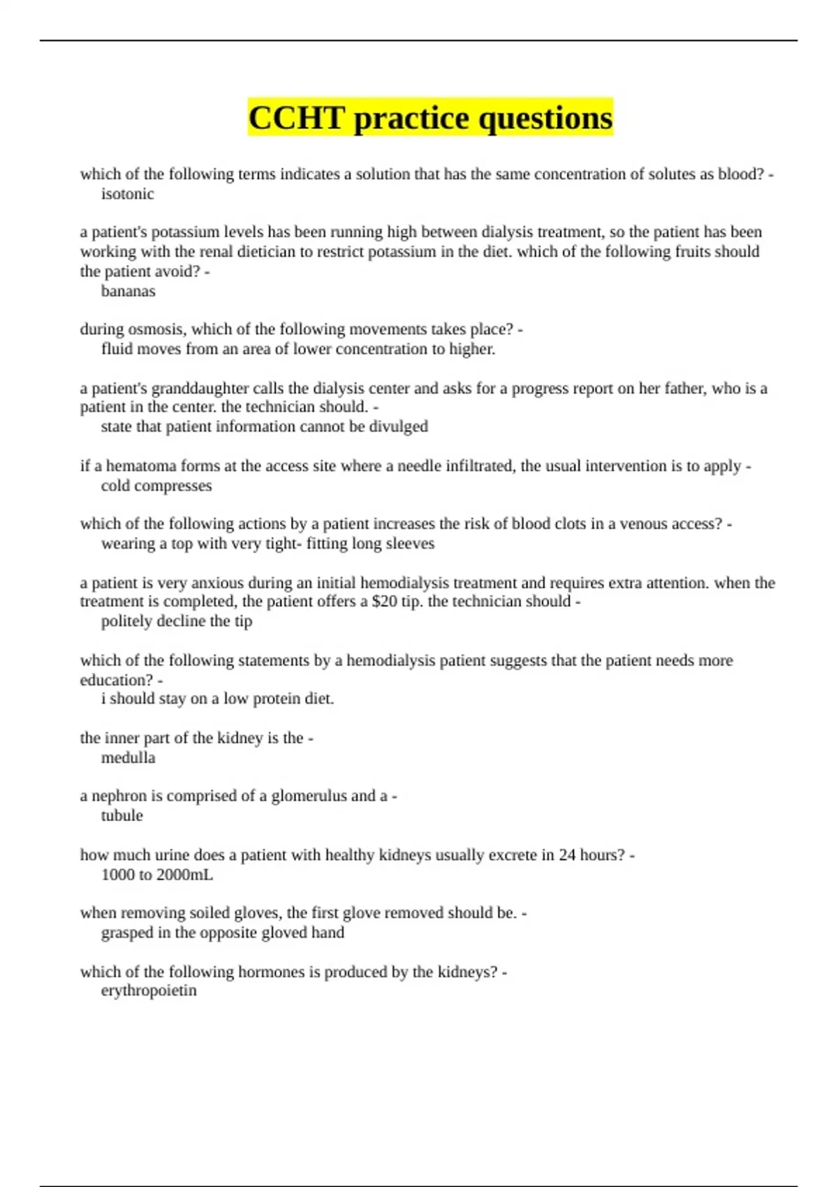 CCHT practice questions.LATEST 2024 GRADED A PLUS