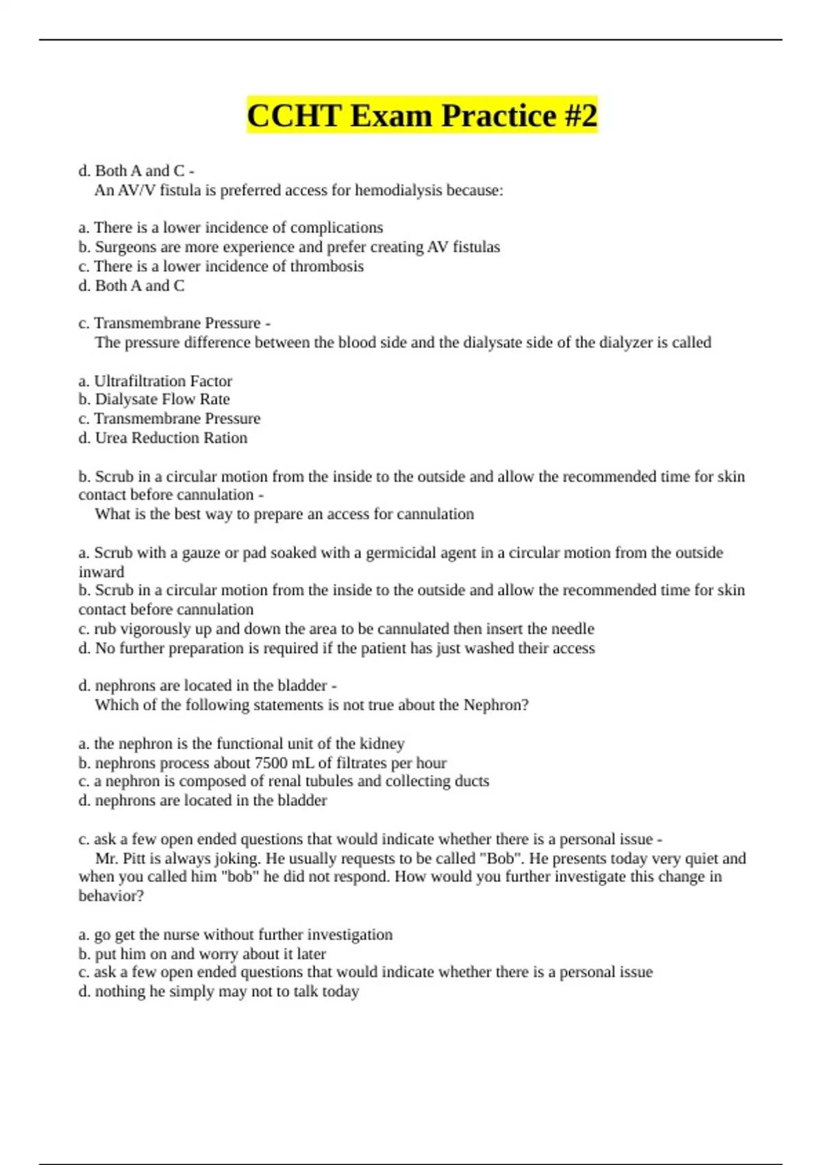 CCHT Exam Practice #2.LATEST 2024 RATED A PLUS