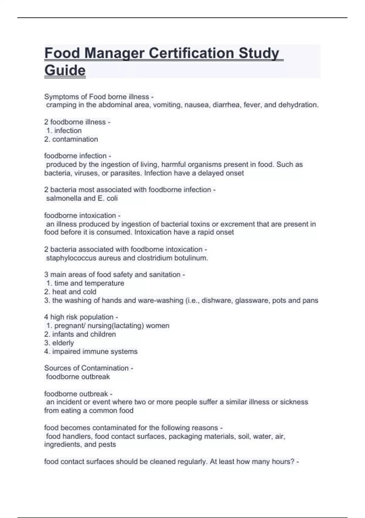 Food Manager Certification Study Guide.LATEST 2024 GRADED A PLUS
