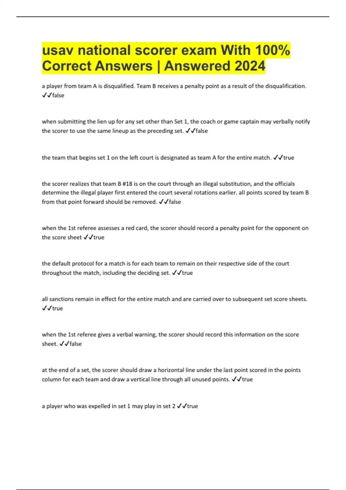 usav national scorer exam With 100% Correct Answers | Answered 2024