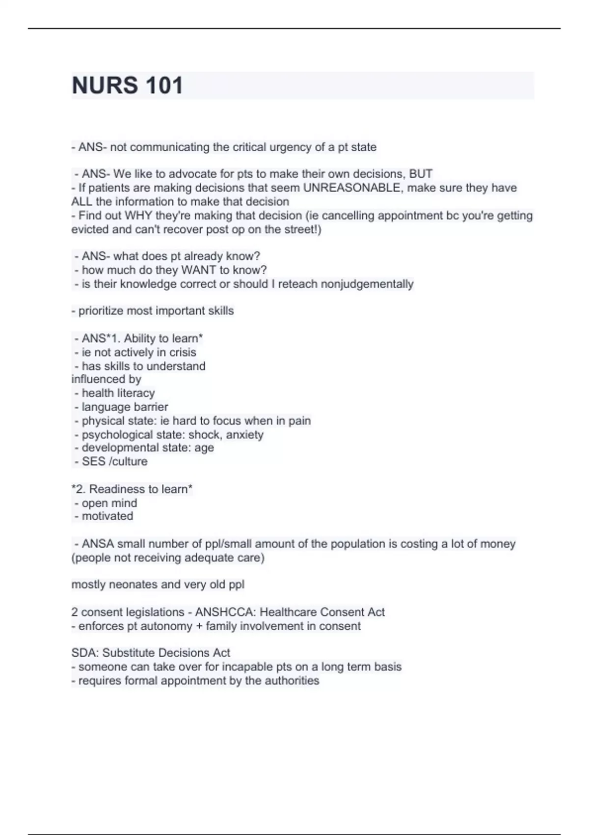 NURS 101 LATEST 2024 GRADED A PLUS.