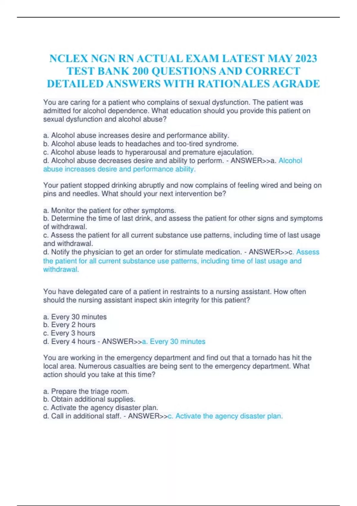 NCLEX NGN RN ACTUAL EXAM LATEST MAY 2023 TEST BANK 200 QUESTIONS AND CORRECT DETAILED ANSWERS WITH RATIONALES AGRADE.NCLEX NGN RN ACTUAL EXAM LATEST MAY 2023 TEST BANK 200 QUESTIONS AND CORRECT DETAILED ANSWERS WITH RATIONALES AGRADE.NCLEX NGN RN ACTUAL EXAM LATEST MAY 2023 TEST BANK 200 QUESTIONS AND CORRECT DETAILED ANSWERS WITH RATIONALES AGRADE.NCLEX NGN RN ACTUAL EXAM LATEST MAY 2023 TEST BANK 200 QUESTIONS AND CORRECT DETAILED ANSWERS WITH RATIONALES AGRADE.NCLEX NGN RN ACTUAL EXAM LATEST MAY 2023 TEST BANK 200 QUESTIONS AND CORRECT DETAILED ANSWERS WITH RATIONALES AGRADE.NCLEX NGN RN ACTUAL EXAM LATEST MAY 2023 TEST BANK 200 QUESTIONS AND CORRECT DETAILED ANSWERS WITH RATIONALES AGRADE.NCLEX NGN RN ACTUAL EXAM LATEST MAY 2023 TEST BANK 200 QUESTIONS AND CORRECT DETAILED ANSWERS WITH RATIONALES AGRADE.NCLEX NGN RN ACTUAL EXAM LATEST MAY 2023 TEST BANK 200 QUESTIONS AND CORRECT DETAILED ANSWERS WITH RATIONALES AGRADE.NCLEX NGN RN ACTUAL EXAM LATEST MAY 2023 TEST BANK 200 QUESTIONS AND CORRECT DETAILED ANSWERS WITH RATIONALES AGRADE.NCLEX NGN RN ACTUAL EXAM LATEST MAY 2023 TEST BANK 200 QUESTIONS AND CORRECT DETAILED ANSWERS WITH RATIONALES AGRADE.NCLEX NGN RN ACTUAL EXAM LATEST MAY 2023 TEST BANK 200 QUESTIONS AND CORRECT DETAILED ANSWERS WITH RATIONALES AGRADE.NCLEX NGN RN ACTUAL EXAM LATEST MAY 2023 TEST BANK 200 QUESTIONS AND CORRECT DETAILED ANSWERS WITH RATIONALES AGRADE.NCLEX NGN RN ACTUAL EXAM LATEST MAY 2023 TEST BANK 200 QUESTIONS AND CORRECT DETAILED ANSWERS WITH RATIONALES AGRADE.NCLEX NGN RN ACTUAL EXAM LATEST MAY 2023 TEST BANK 200 QUESTIONS AND CORRECT DETAILED ANSWERS WITH RATIONALES AGRADE.NCLEX NGN RN ACTUAL EXAM LATEST MAY 2023 TEST BANK 200 QUESTIONS AND CORRECT DETAILED ANSWERS WITH RATIONALES AGRADE.NCLEX NGN RN ACTUAL EXAM LATEST MAY 2023 TEST BANK 200 QUESTIONS AND CORRECT DETAILED ANSWERS WITH RATIONALES AGRADE.NCLEX NGN RN ACTUAL EXAM LATEST MAY 2023 TEST BANK 200 QUESTIONS AND CORRECT DETAILED ANSWERS WITH RATIONALES AGRADE.NCLEX NGN RN ACTUAL EXAM LATEST MAY 2023 TEST BANK 200 QUESTIONS AND CORRECT DETAILED ANSWERS WITH RATIONALES AGRADE.NCLEX NGN RN ACTUAL EXAM LATEST MAY 2023 TEST BANK 200 QUESTIONS AND CORRECT DETAILED ANSWERS WITH RATIONALES AGRADE.