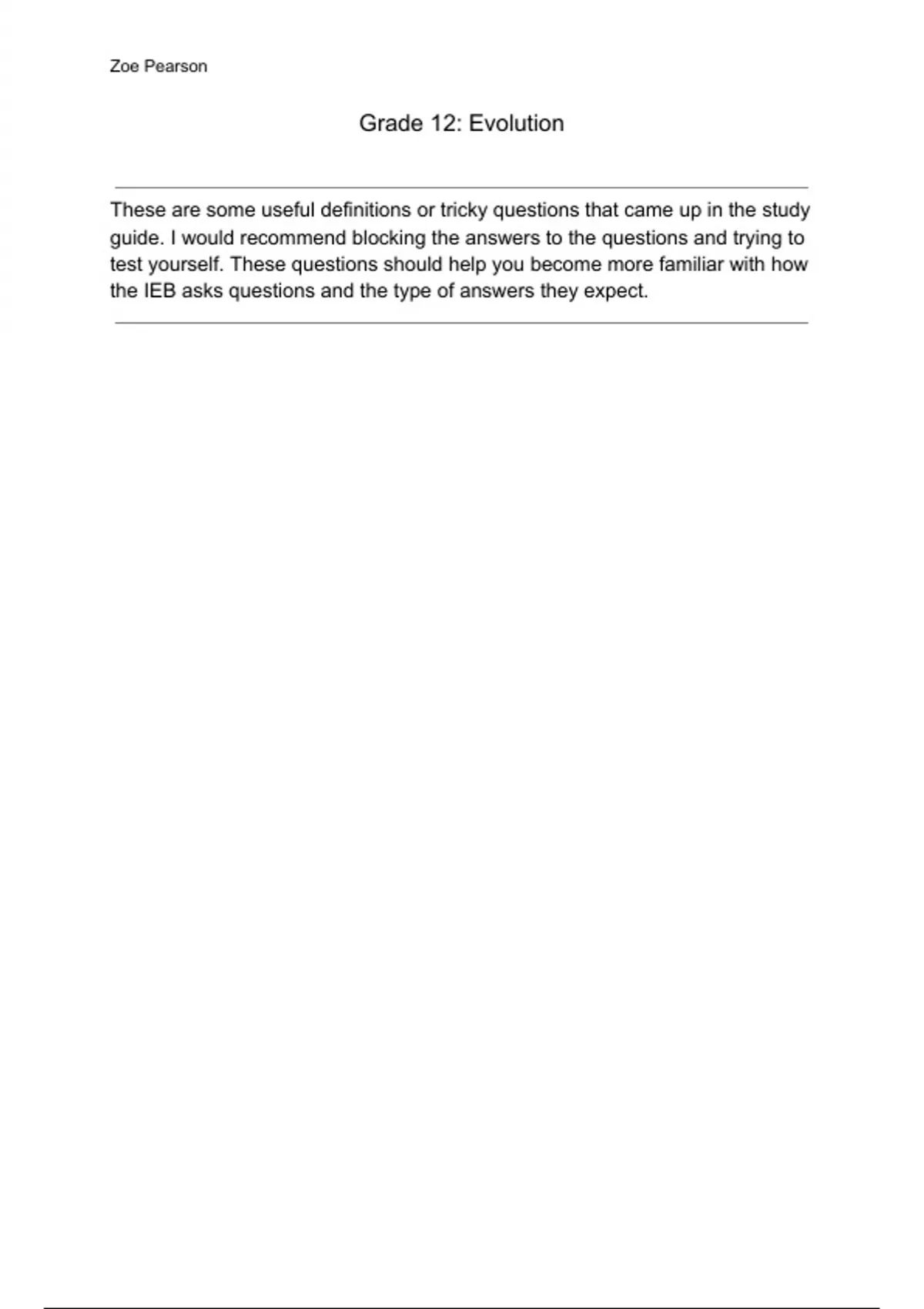 Grade 12: Evolution