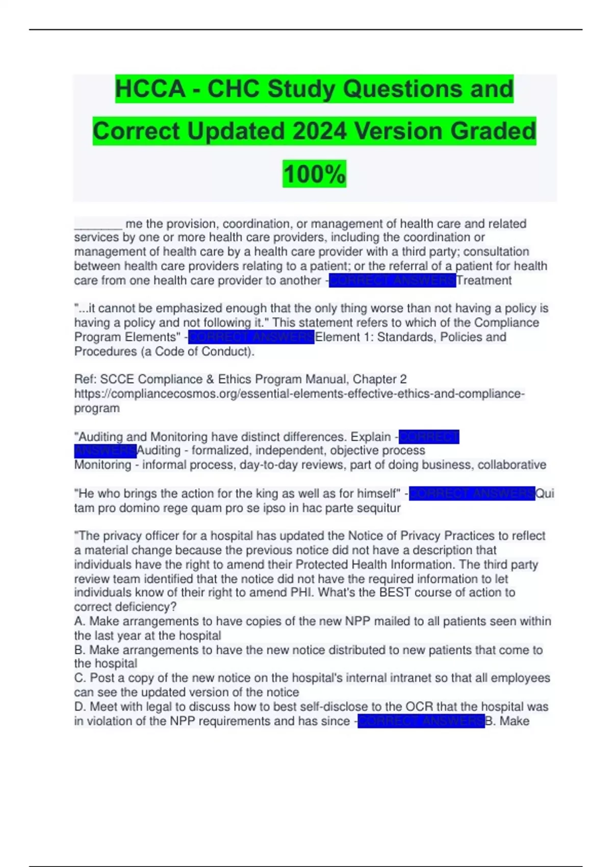 HCCA - CHC EXAM STUDY PACK 2024 –ACTUAL EXAM QUESTIONS WITH 100% VERIFIED SOLUTIONS-LATEST UPDATE /A+ GRADE True or False: HCCA - CHC EXAM STUDY PACK 2024 –ACTUAL EXAM QUESTIONS WITH 100% VERIFIED SOLUTIONS-LATEST UPDATE /A+ GRADE True or False: HCCA - CHC EXAM STUDY PACK 2024 –ACTUAL EXAM QUESTIONS WITH 100% VERIFIED SOLUTIONS-LATEST UPDATE /A+ GRADE True or False: