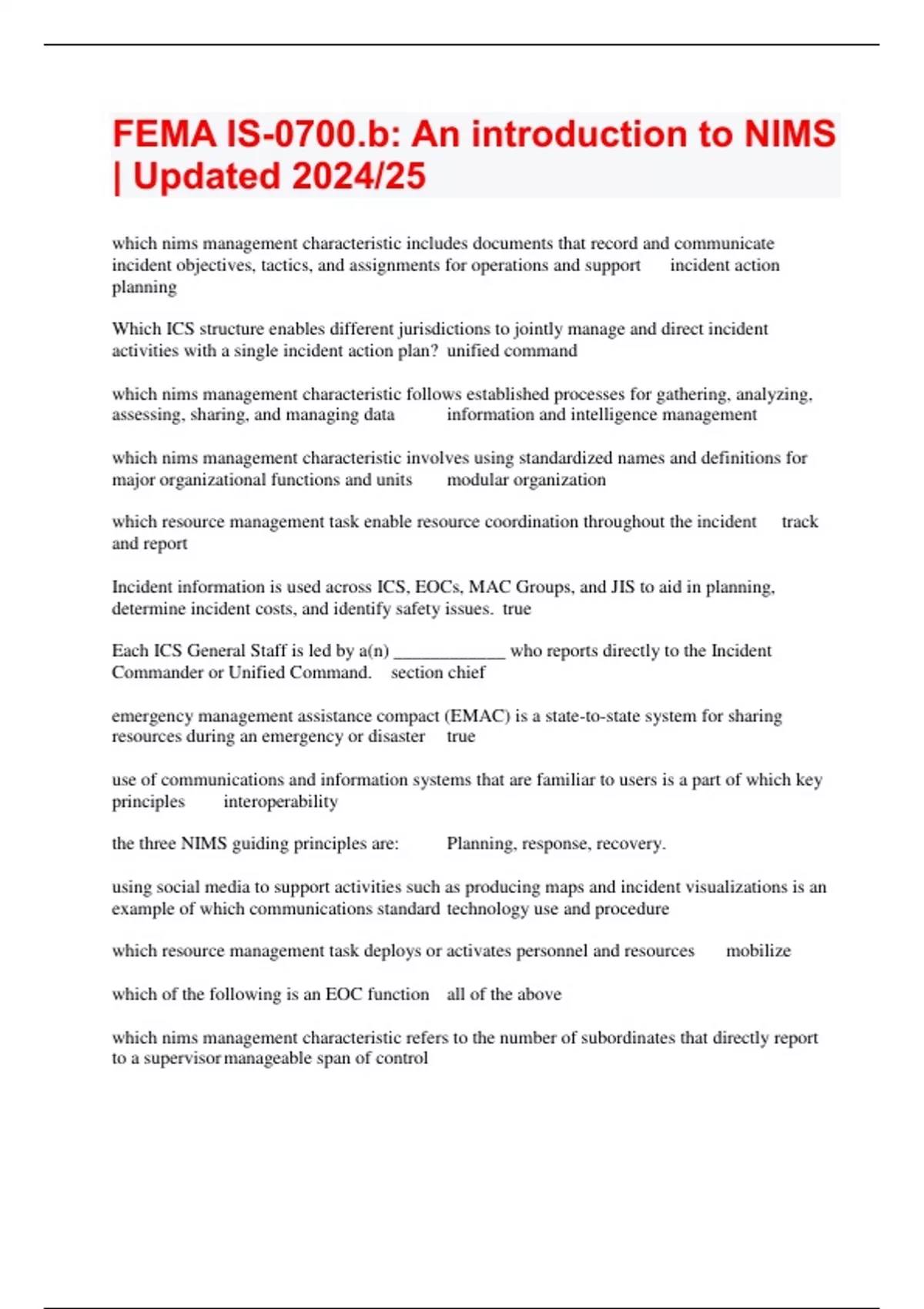 FEMA IS-0700.b: An introduction to NIMS | Updated 2024/25