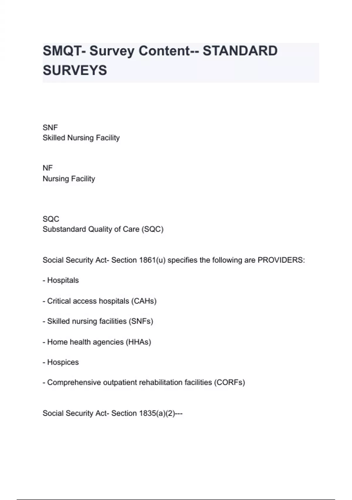SMQT- Survey Content-- STANDARD SURVEYS test questions and answers