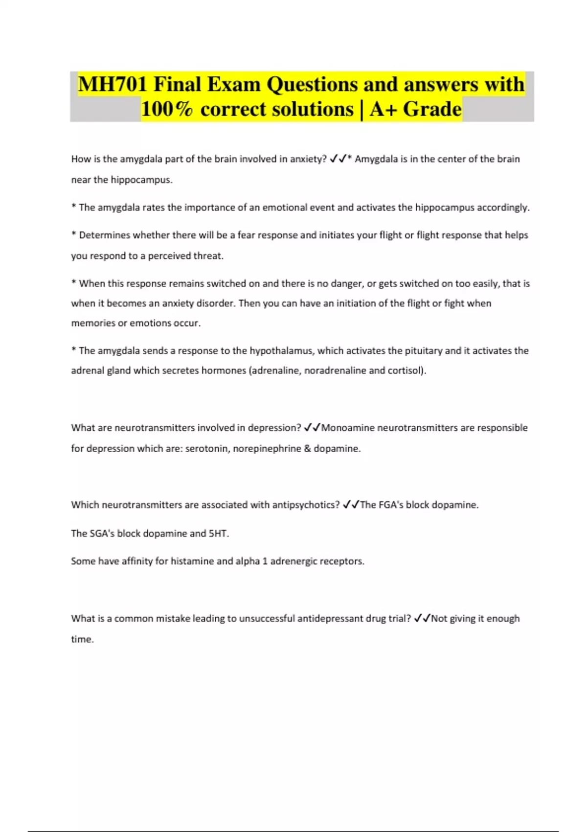 MH701 Final Exam Questions and answers with 100% correct solutions | A+ Grade