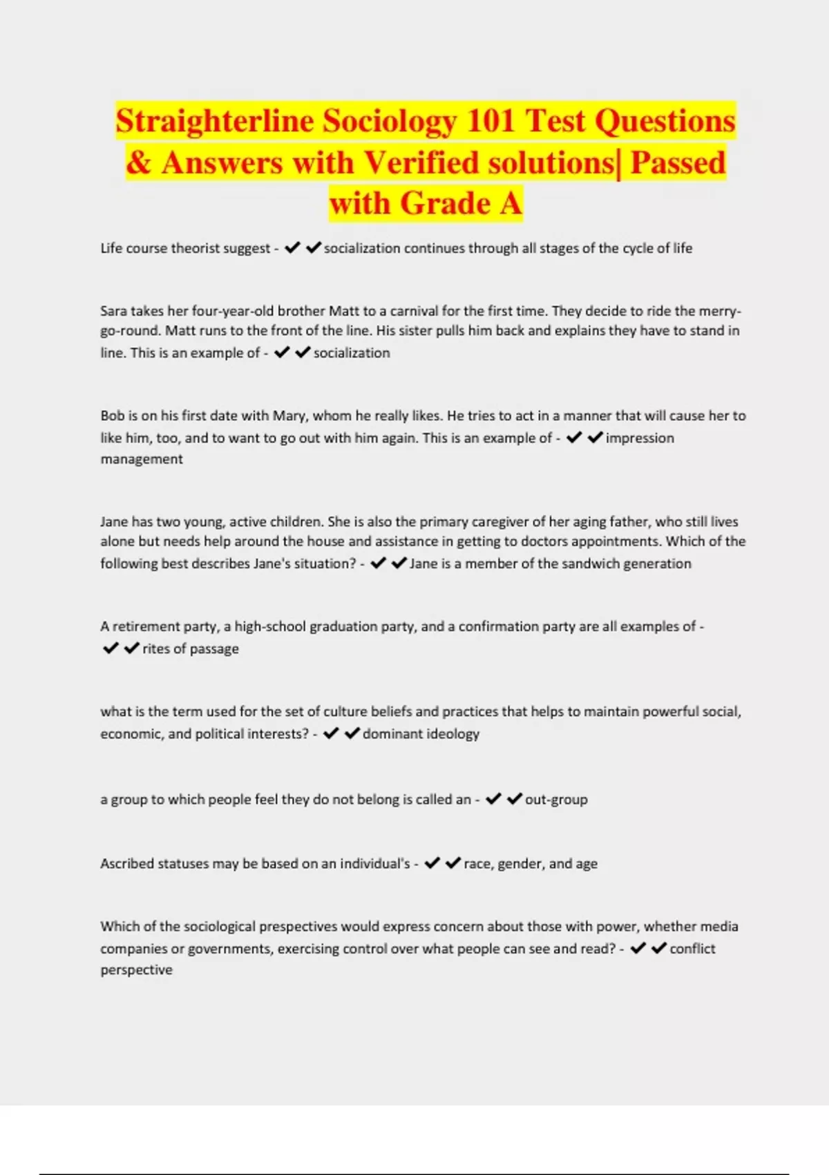 Straighterline Sociology 101 Test Questions & Answers with Verified solutions| Passed with Grade A
