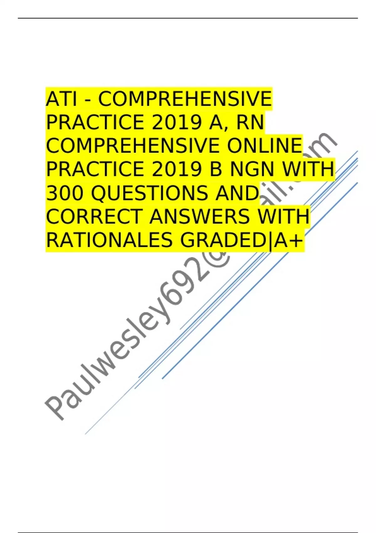 ATI - COMPREHENSIVE PRACTICE 2019 A, RN COMPREHENSIVE ONLINE PRACTICE 2019 B NGN WITH 300 QUESTIONS AND CORRECT ANSWERS WITH RATIONALES GRADED|A+