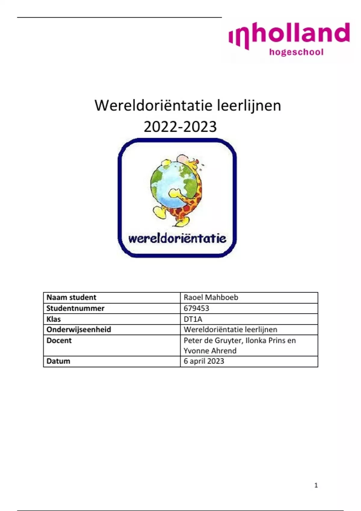 Wereldoriëntatie PABO InHolland jaar 1