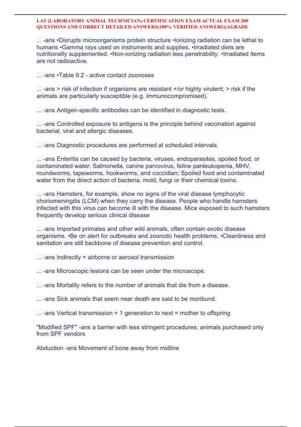 LAT (LABORATORY ANIMAL TECHNICIAN) CERTIFICATION EXAM ACTUAL EXAM 200 QUESTIONS AND CORRECT DETAILED ANSWERS(100% VERIFIED ANSWERS)|AGRADE