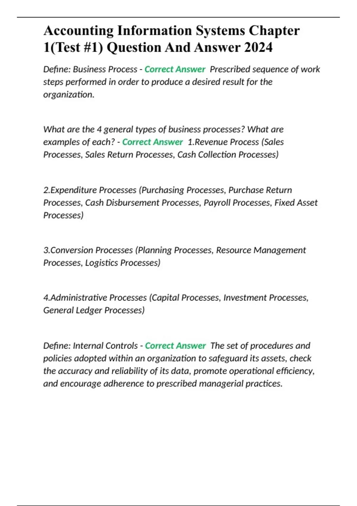 Accounting Information Systems Chapter 1(Test #1) Question And Answer 2024