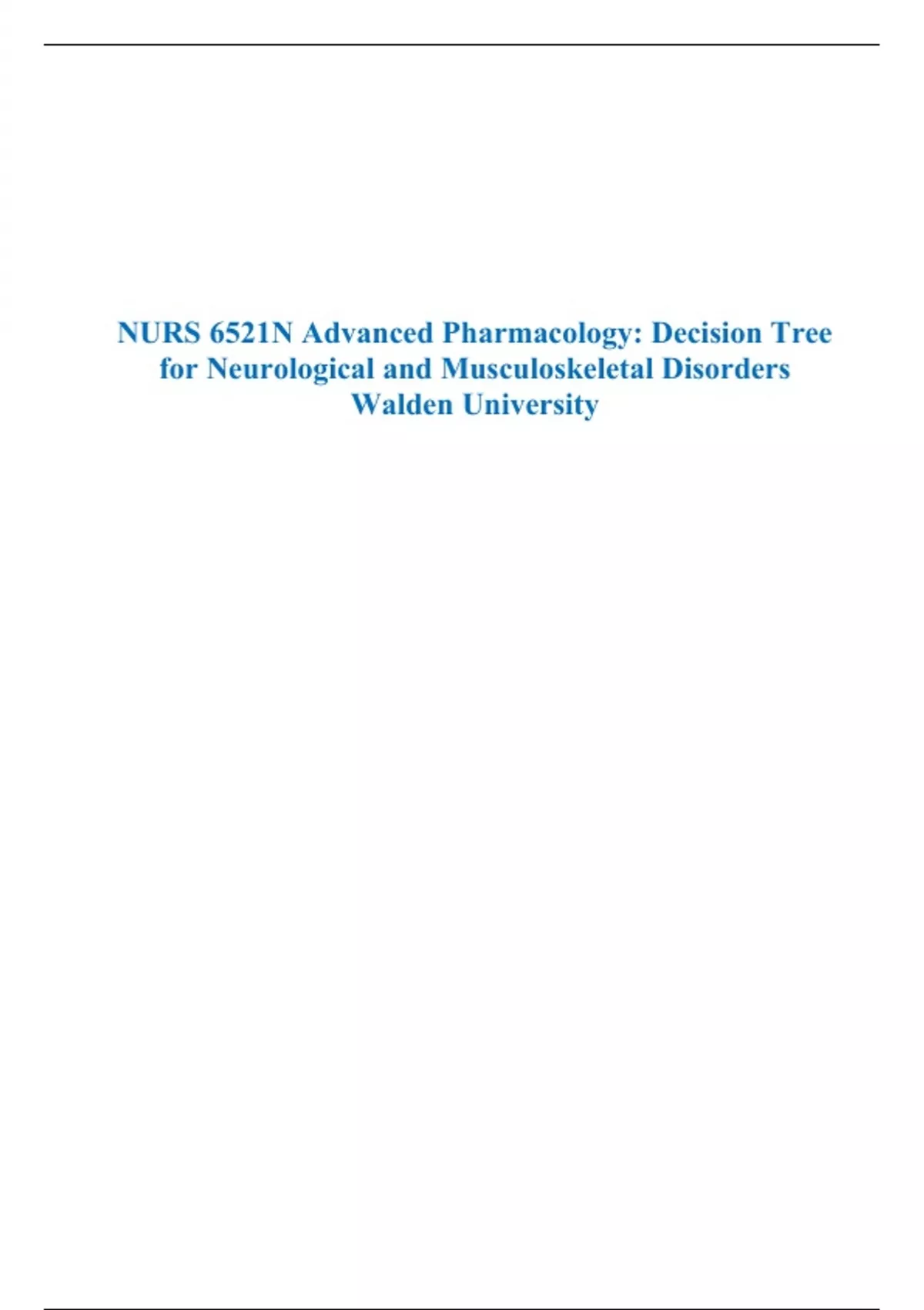 NURS 6521N Advanced Pharmacology: Decision Tree for Neurological and Musculoskeletal Disorders Walden University