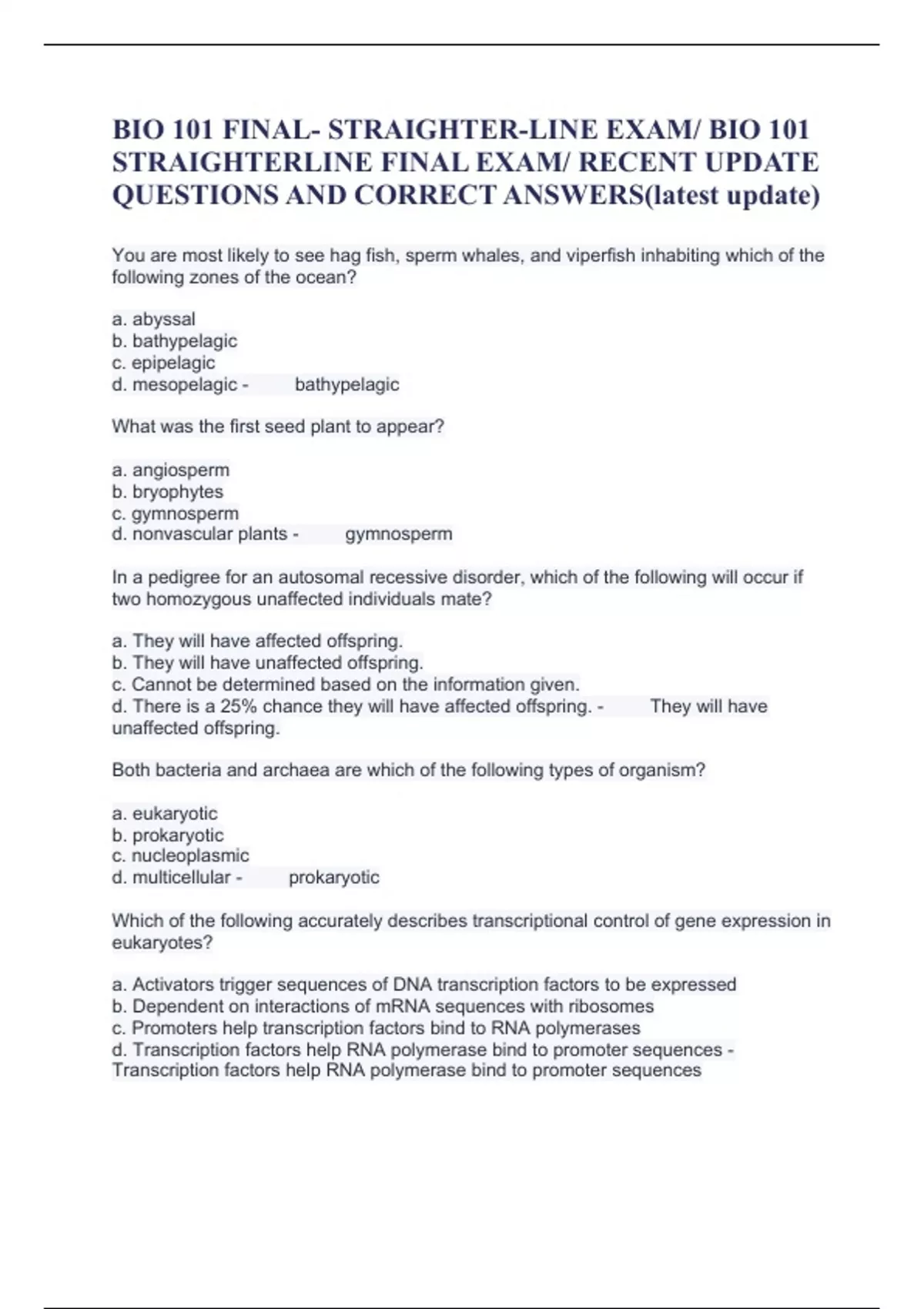 BIO 101 FINAL- STRAIGHTER-LINE EXAM/ BIO 101 STRAIGHTERLINE FINAL EXAM/ RECENT UPDATE QUESTIONS AND CORRECT ANSWERS(latest update)