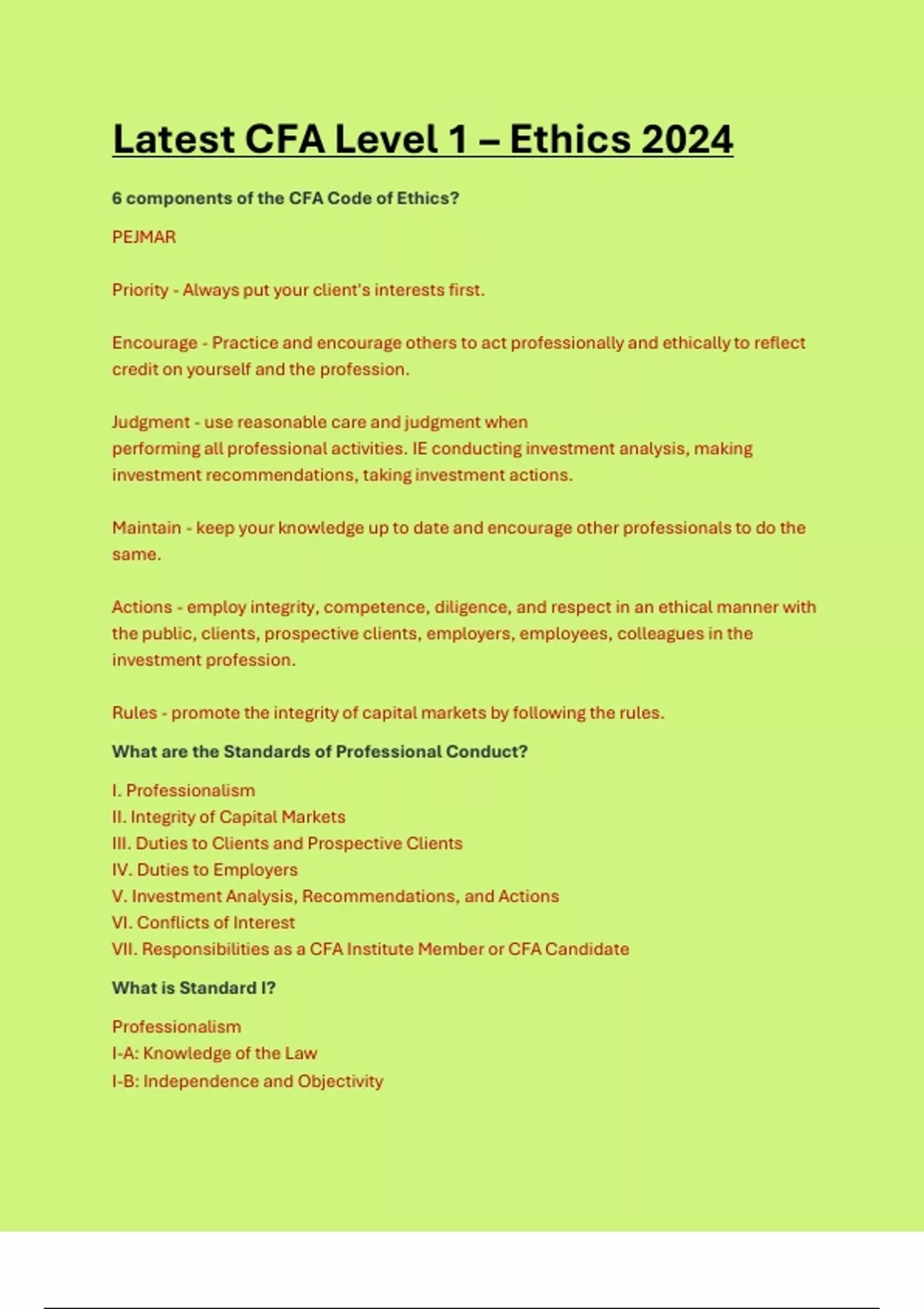 Latest CFA Level 1 – Ethics 2024