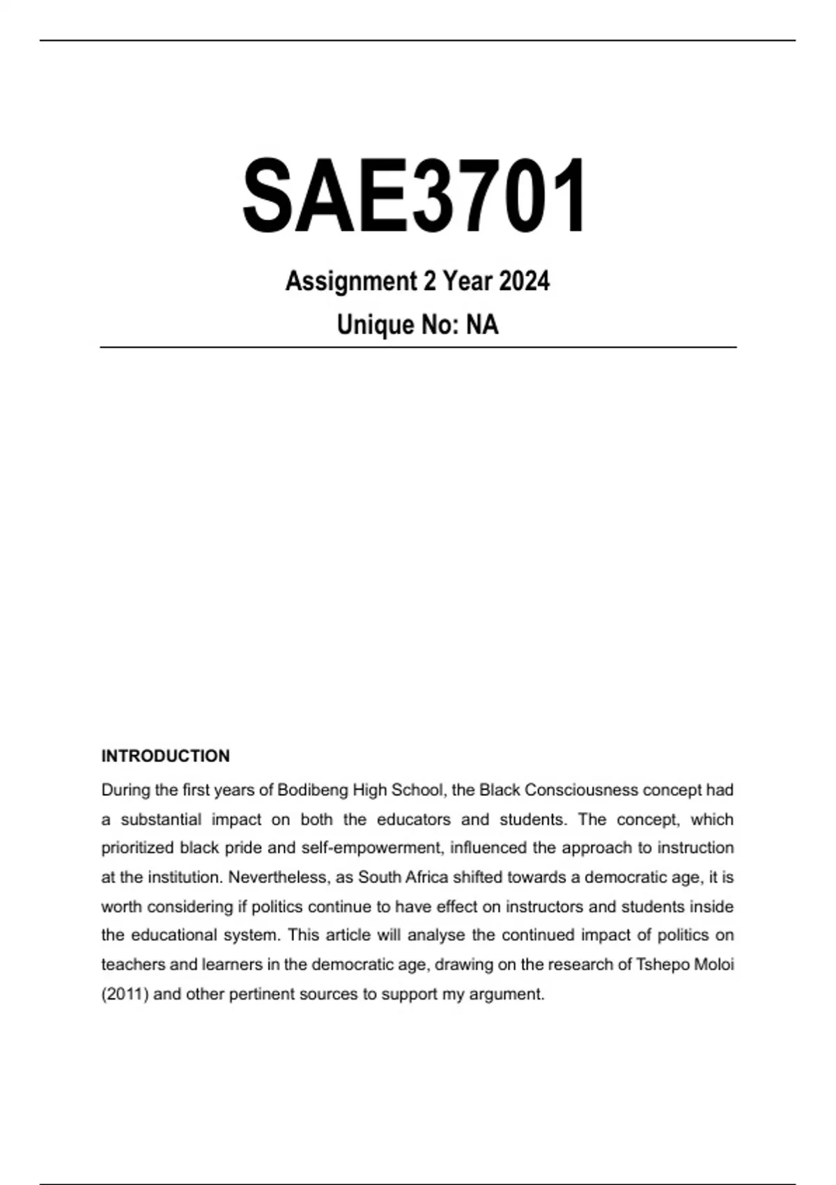 teachers and learners in the democratic age, drawing on the research of Tshepo Moloi