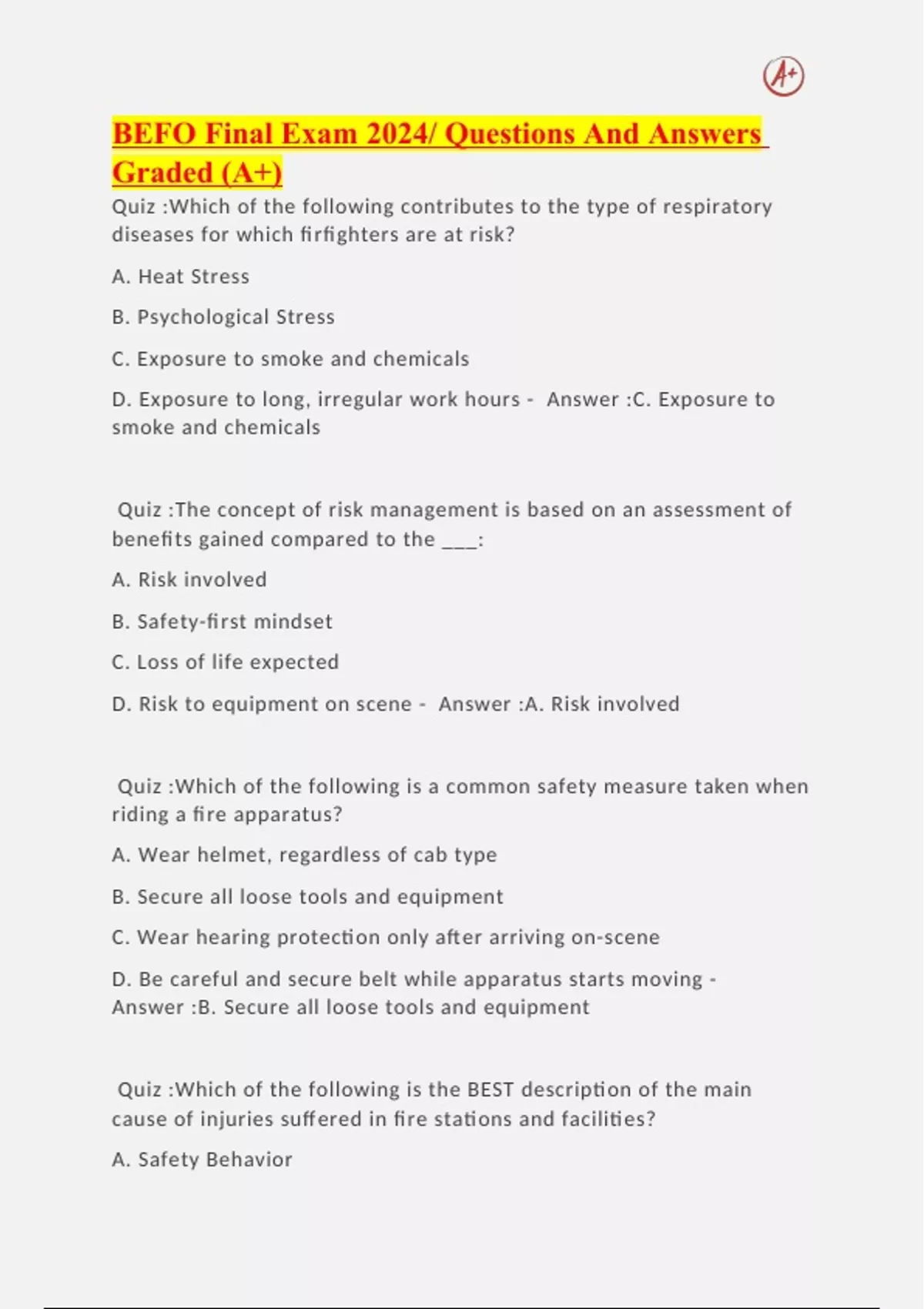 BEFO Final Exam 2024/ Questions And Answers Graded (A+)