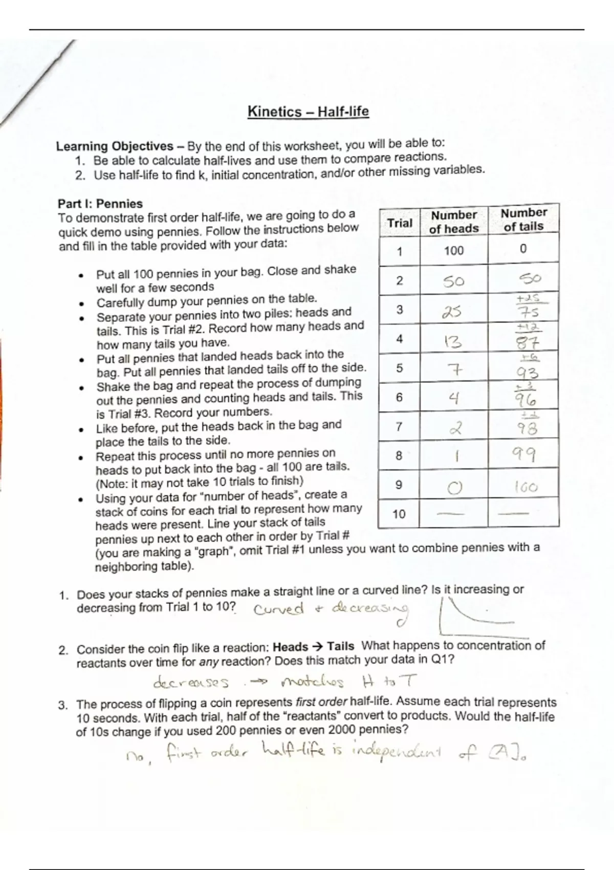 Kinetics Rates 3 - Half life Worksheet_KEY