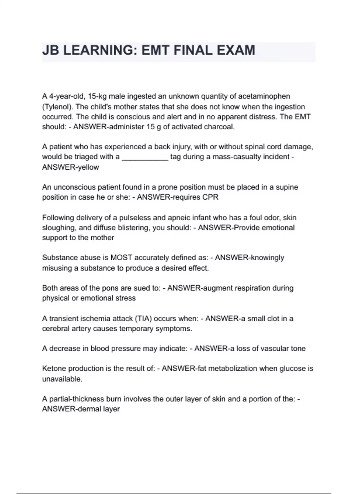 JB LEARNING: EMT FINAL EXAM questions with complete solution