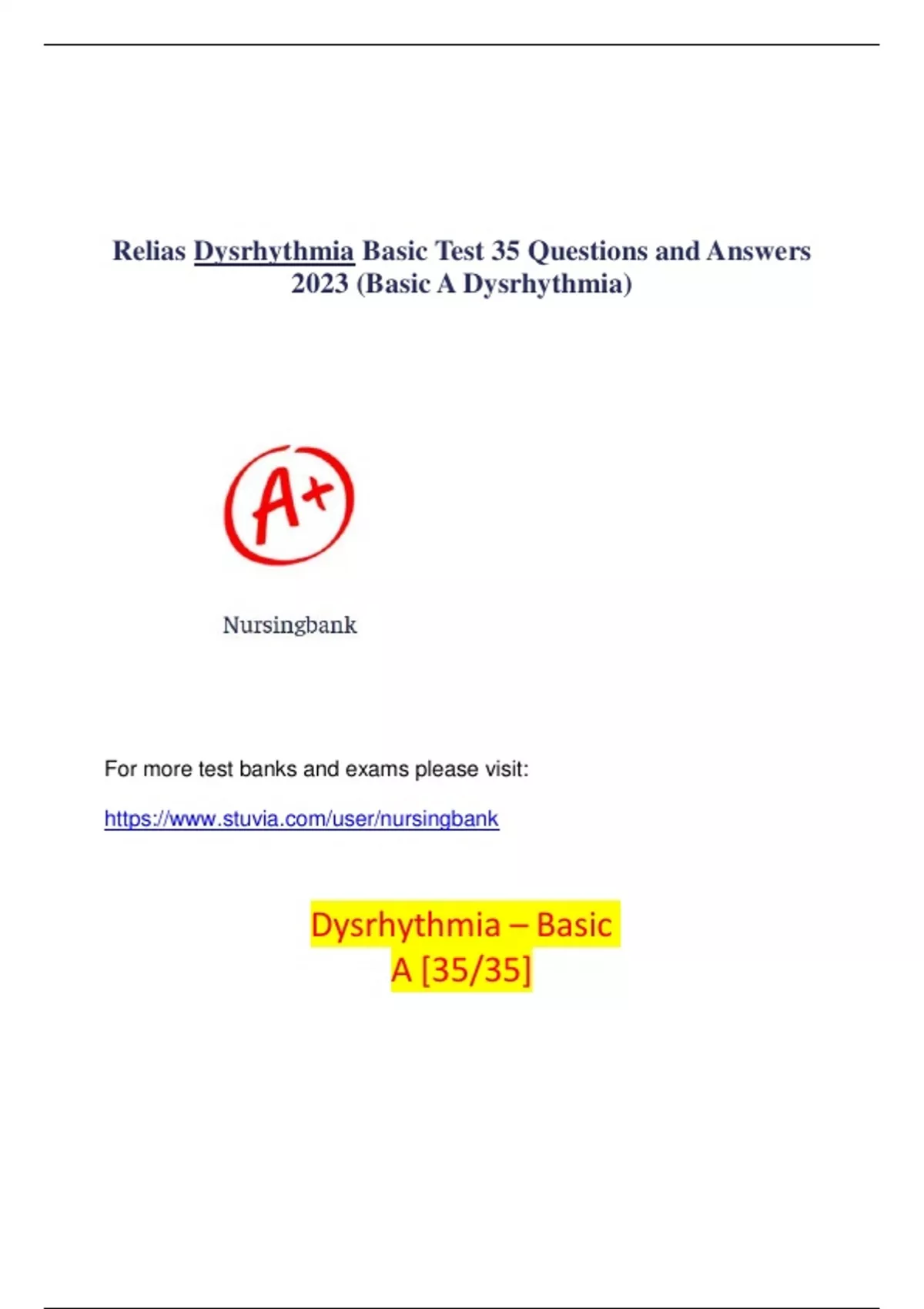 Relias Dysrhythmia Basic Test 35 Questions and Answers 2023 *Basic A Dysrhythmia*