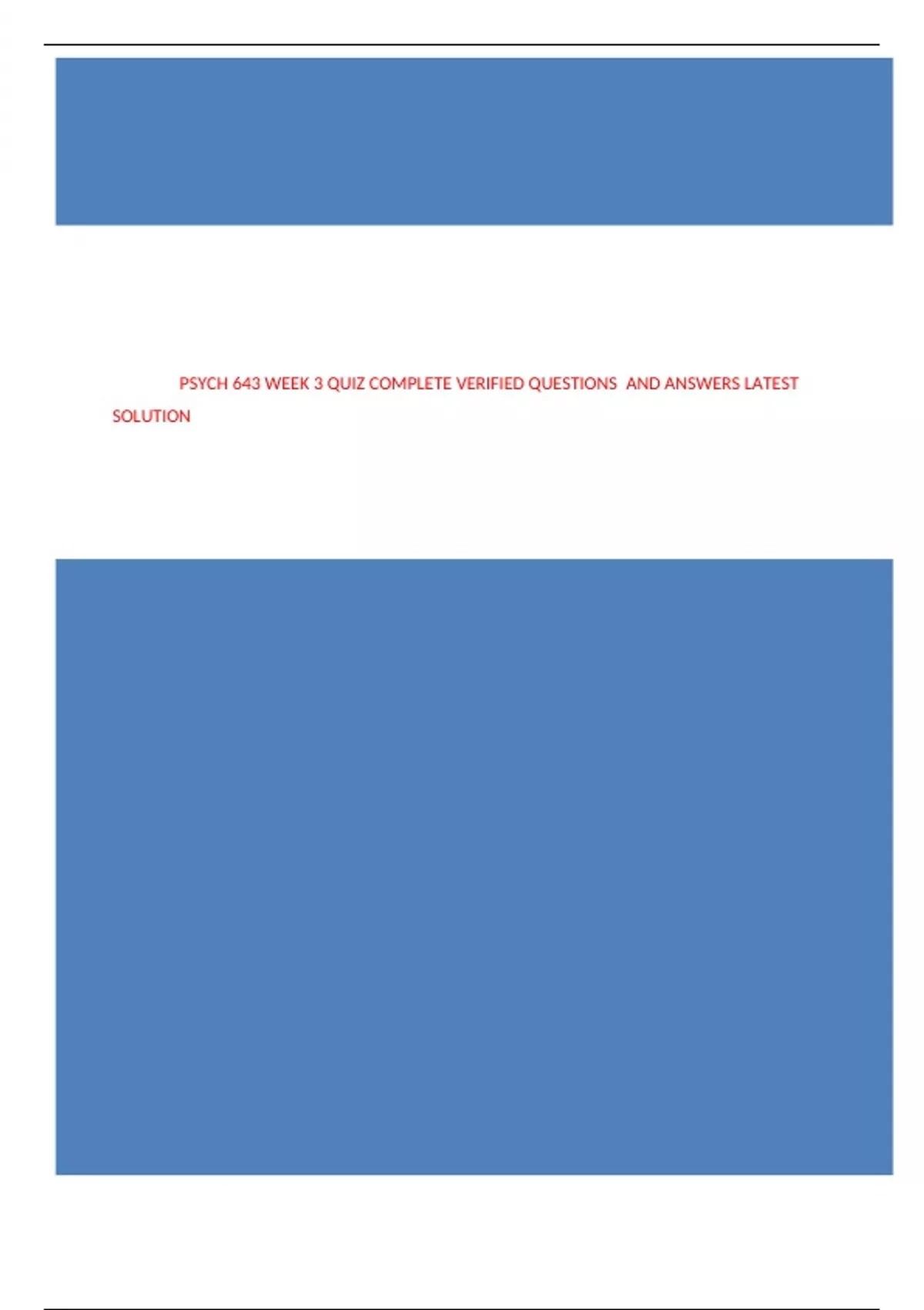 PSYCH 643 WEEK 3 QUIZ COMPLETE VERIFIED QUESTIONS AND ANSWERS LATEST SOLUTION