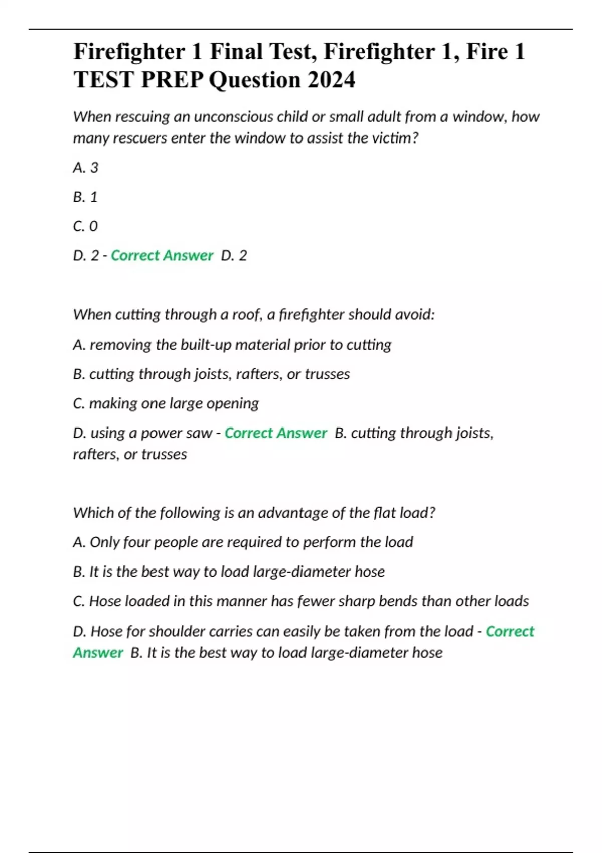 Firefighter 1 Final Test, Firefighter 1, Fire 1 TEST PREP Question 2024